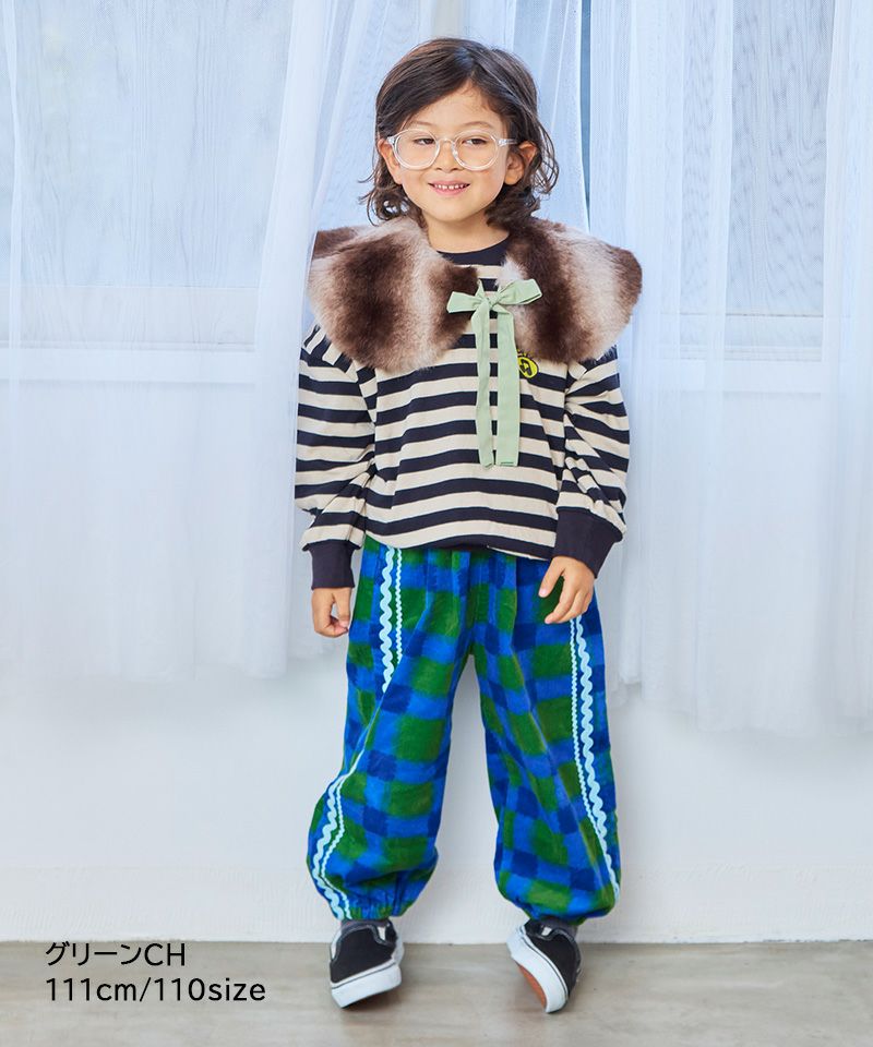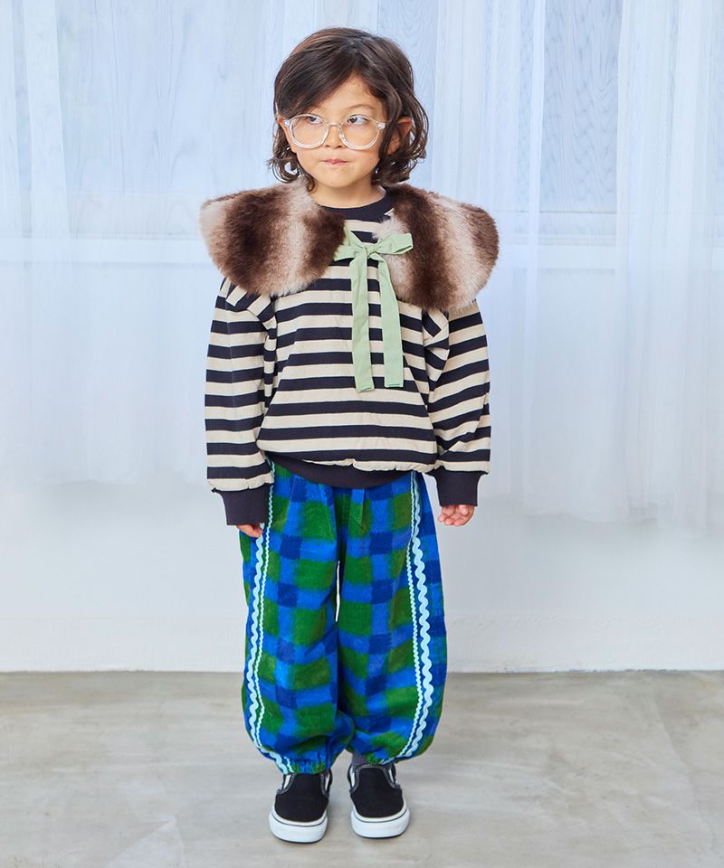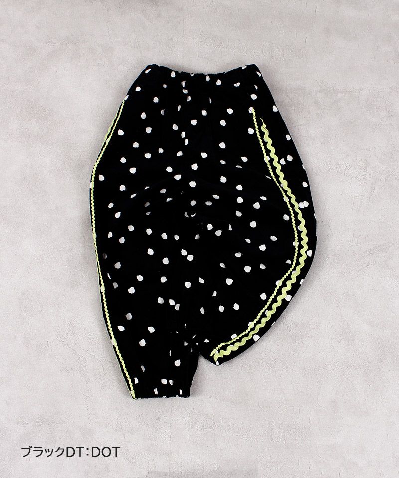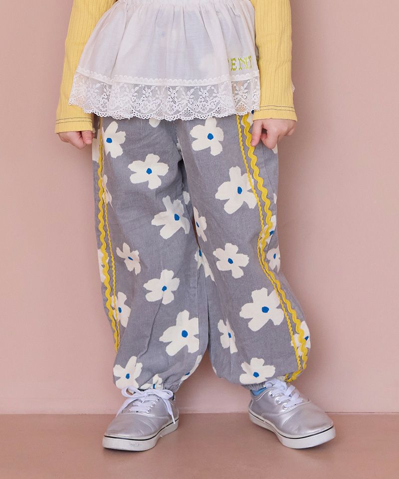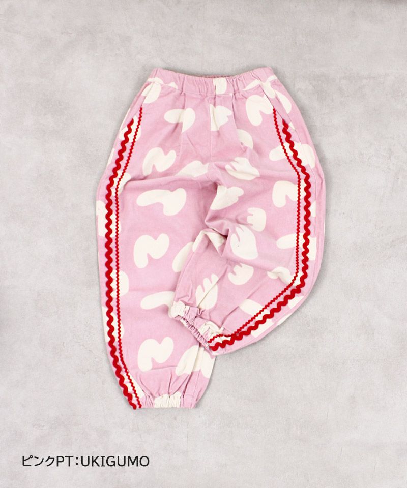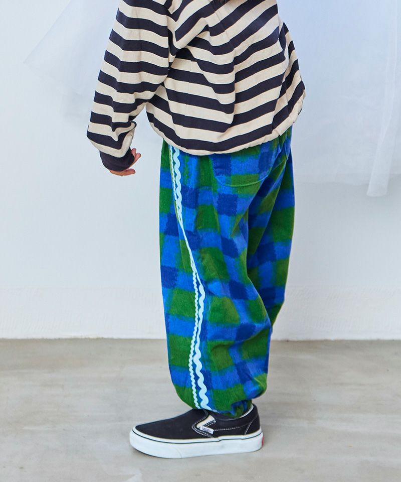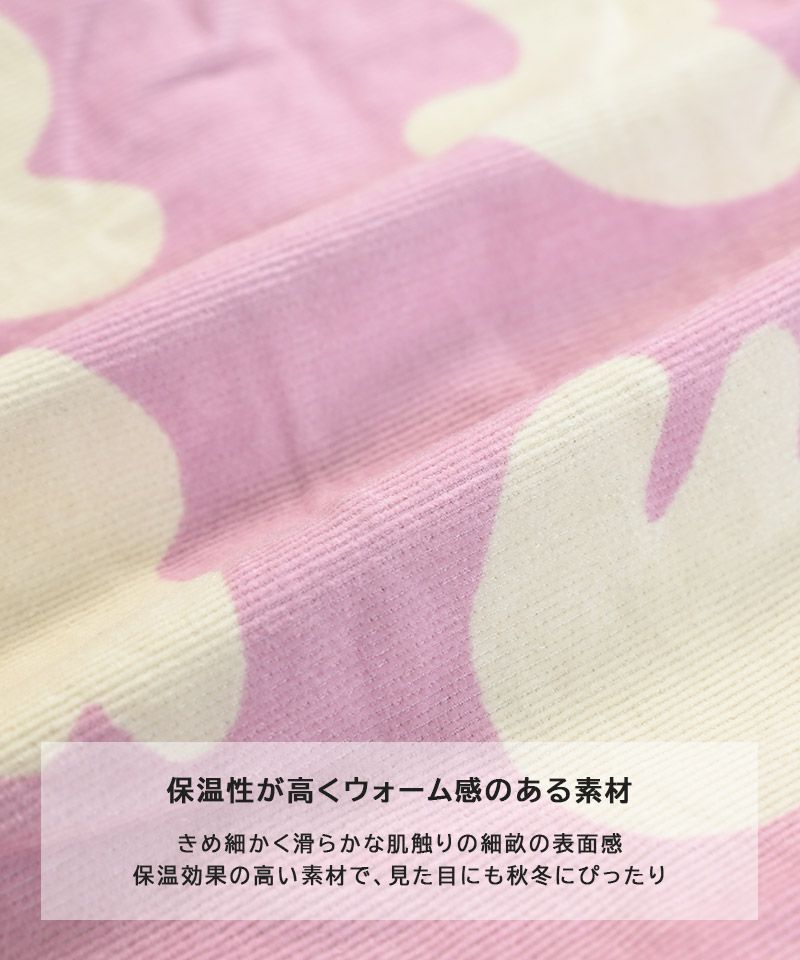 やわらかなコーデュロイ素材にポップな柄をのせたデザインパンツ。