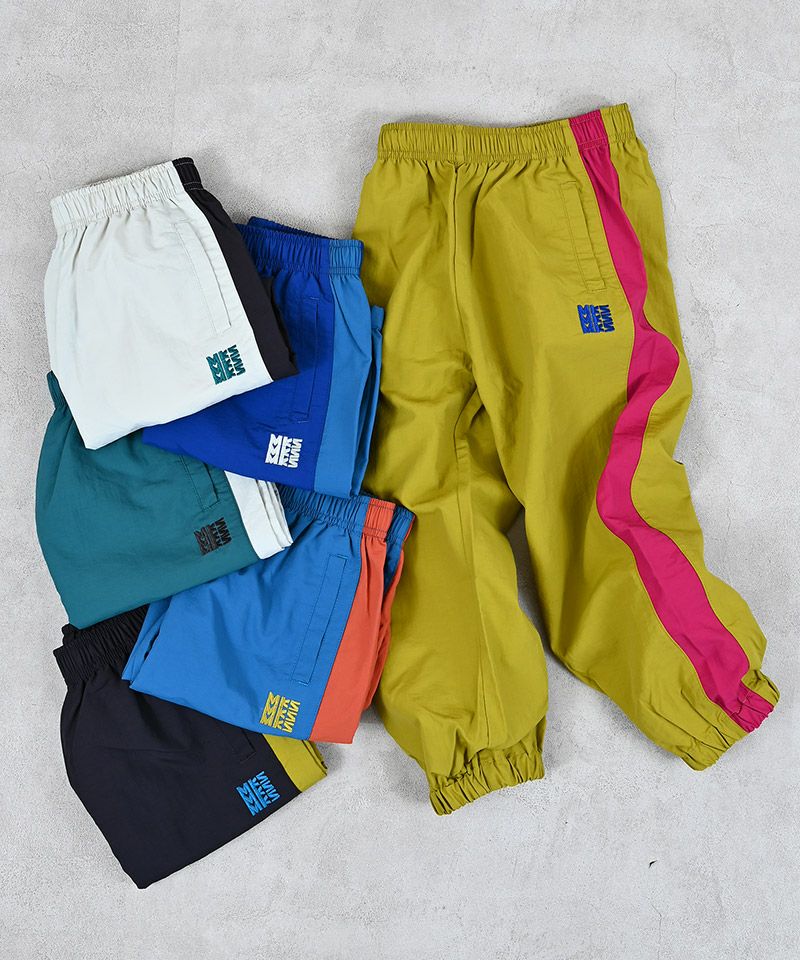 ナイロン素材の切り替えラインが映える、アクティブムードたっぷりのパンツです。