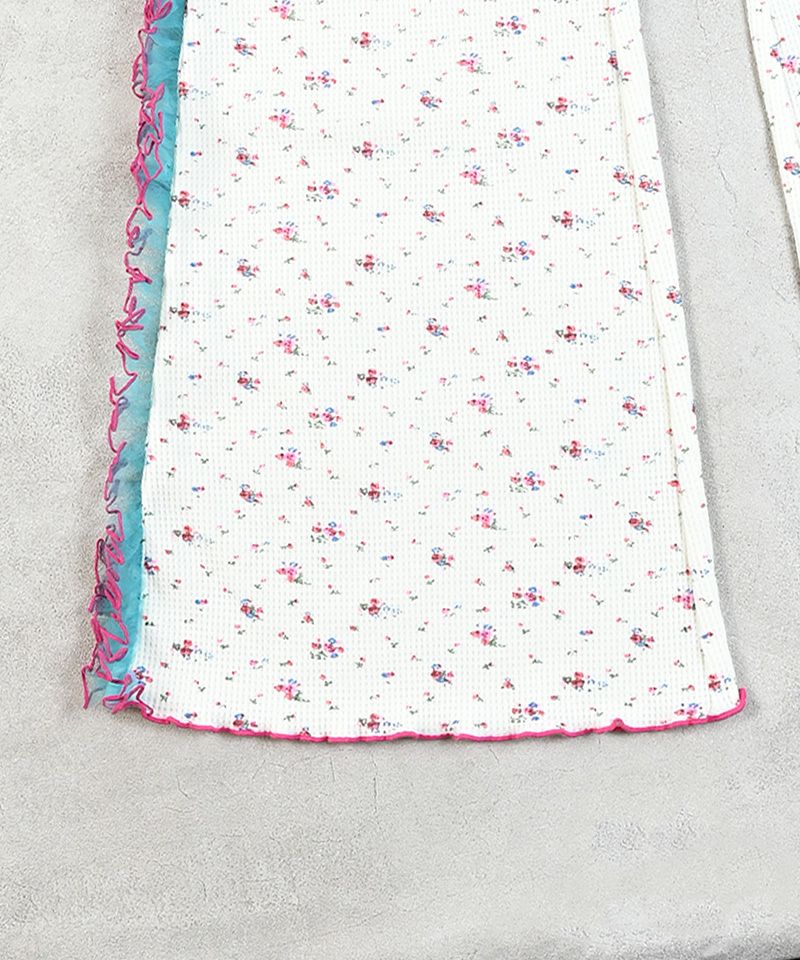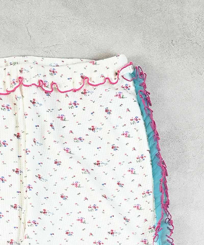 柄が主張し過ぎないシンプルな見た目の小花柄にサイドのチュールがとってもガーリーな1着。