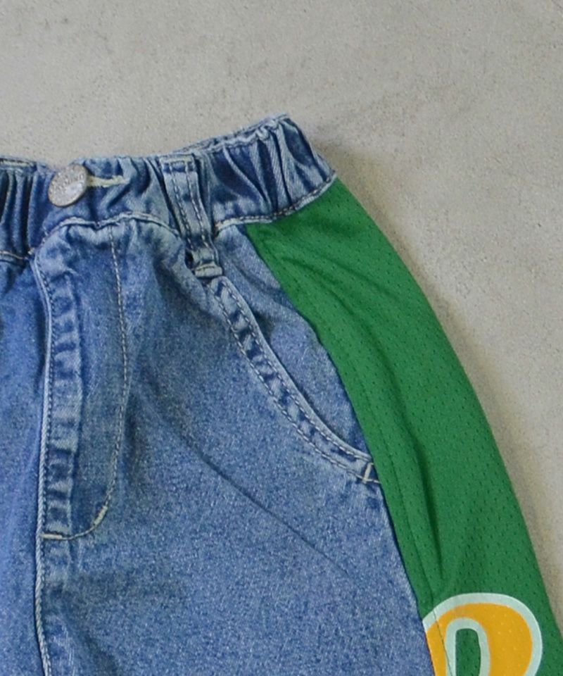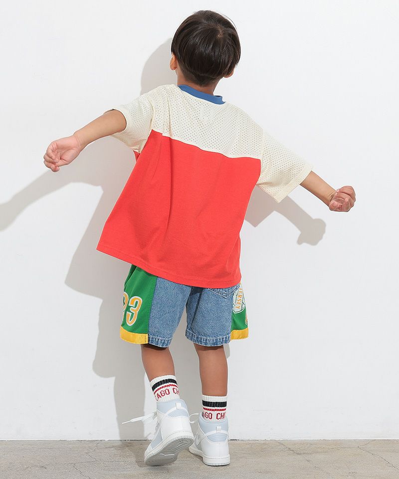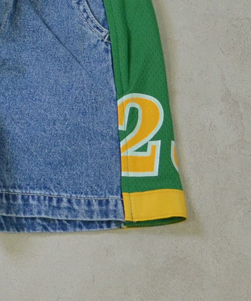 メッシュのユニフォームを両サイドに大胆に切り替えた、リメイクショーツ。