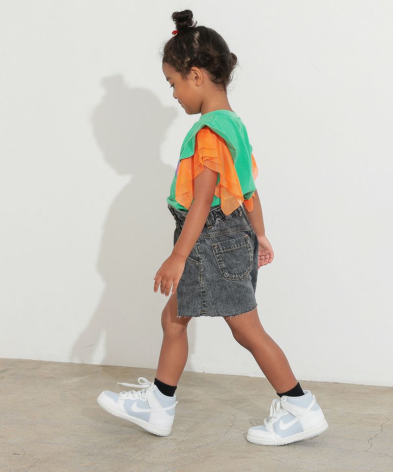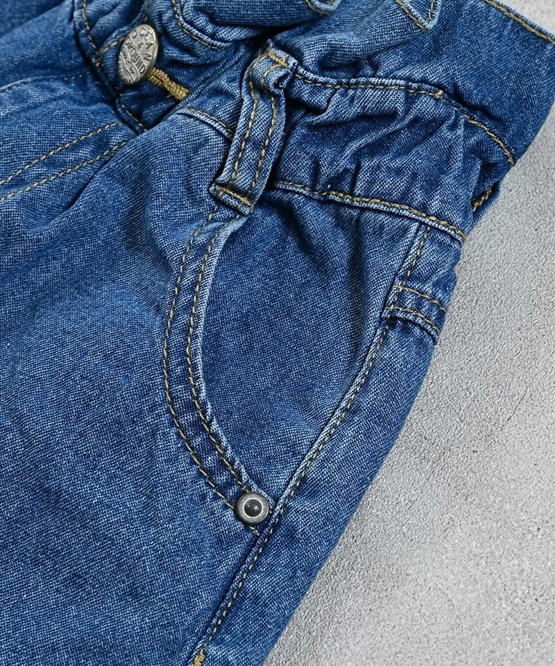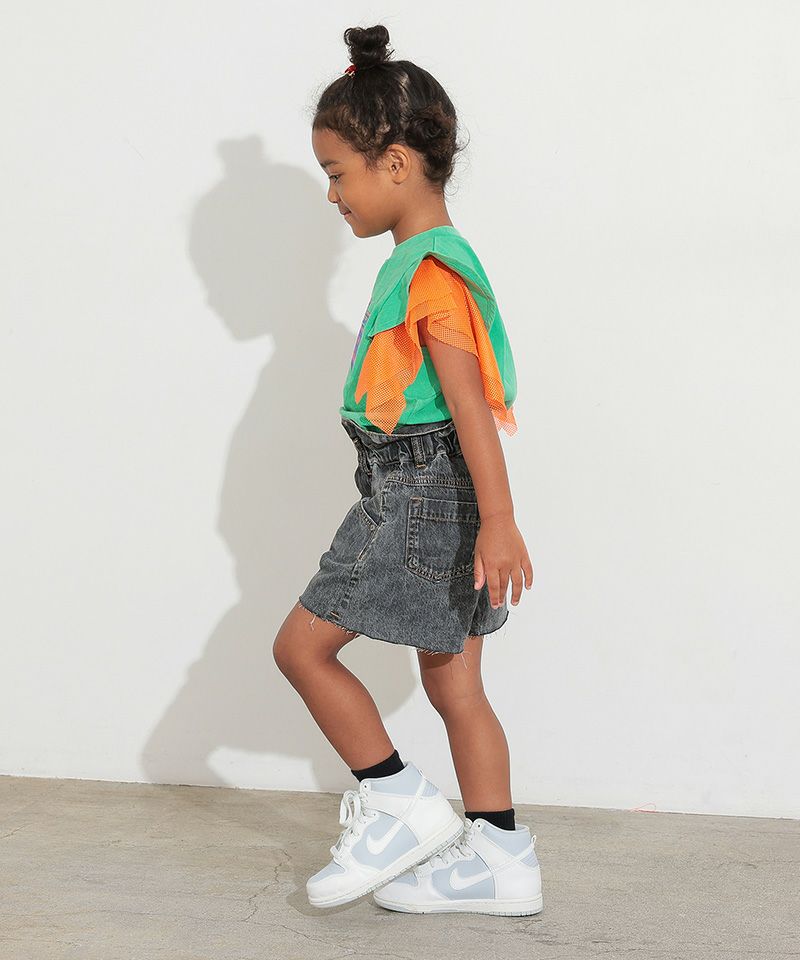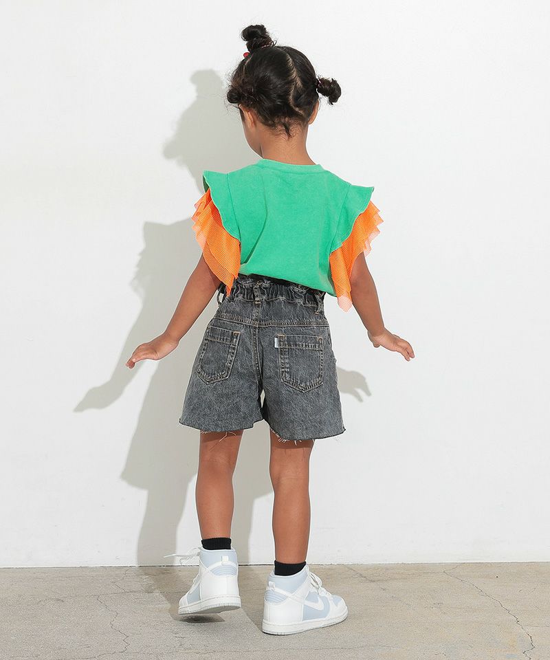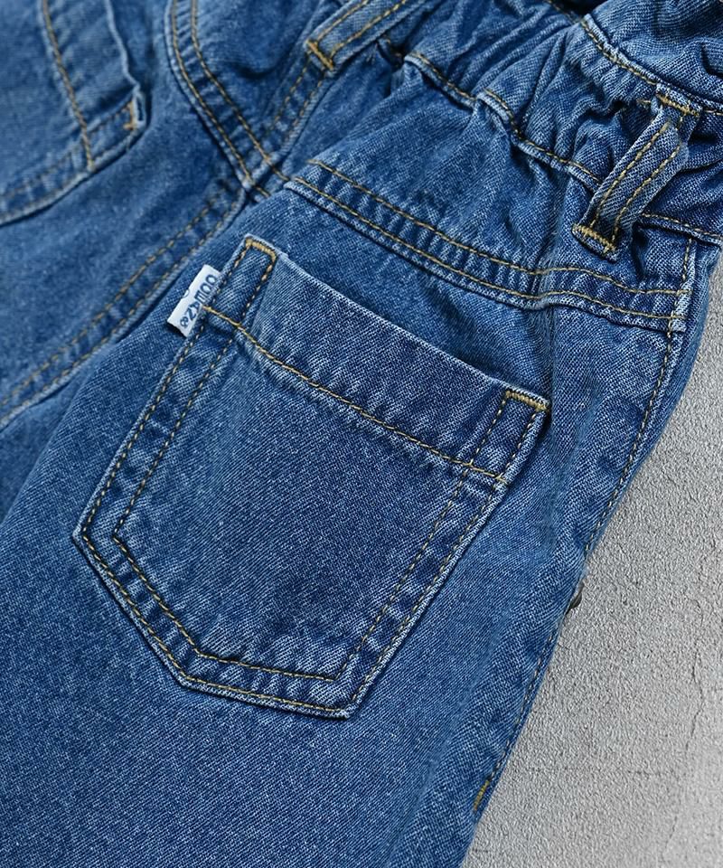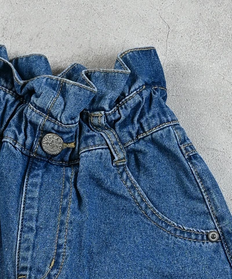 シーズンレスに着回せるデニム素材のショートパンツは、通園・通学に便利なアイテム。