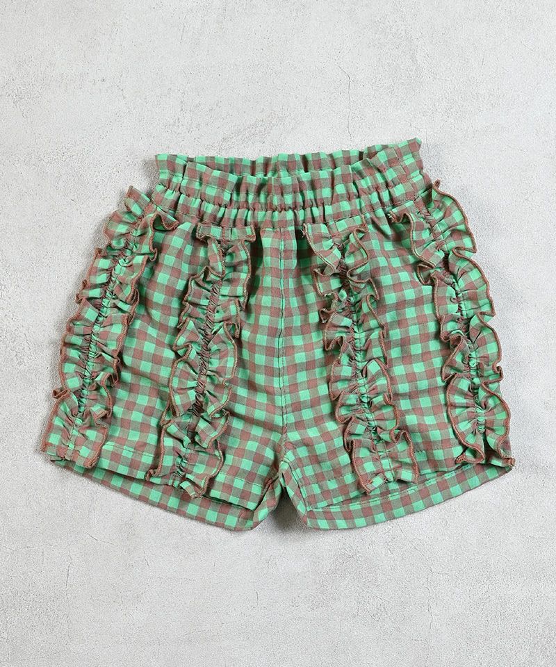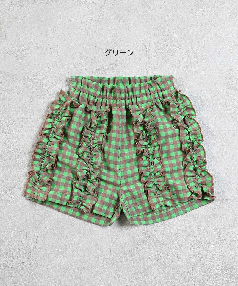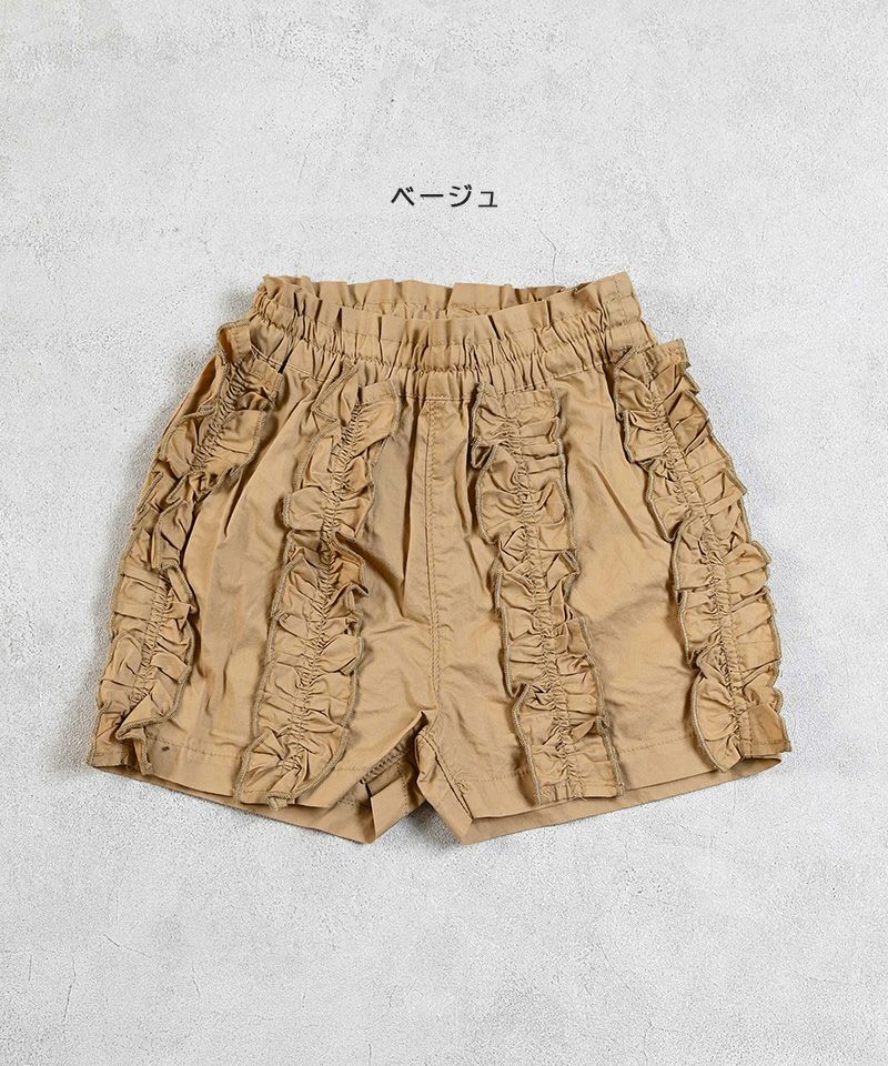 ボリュームフリルがガーリーデザインなショートパンツは、通園、通学に便利なアイテム。