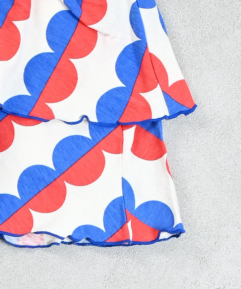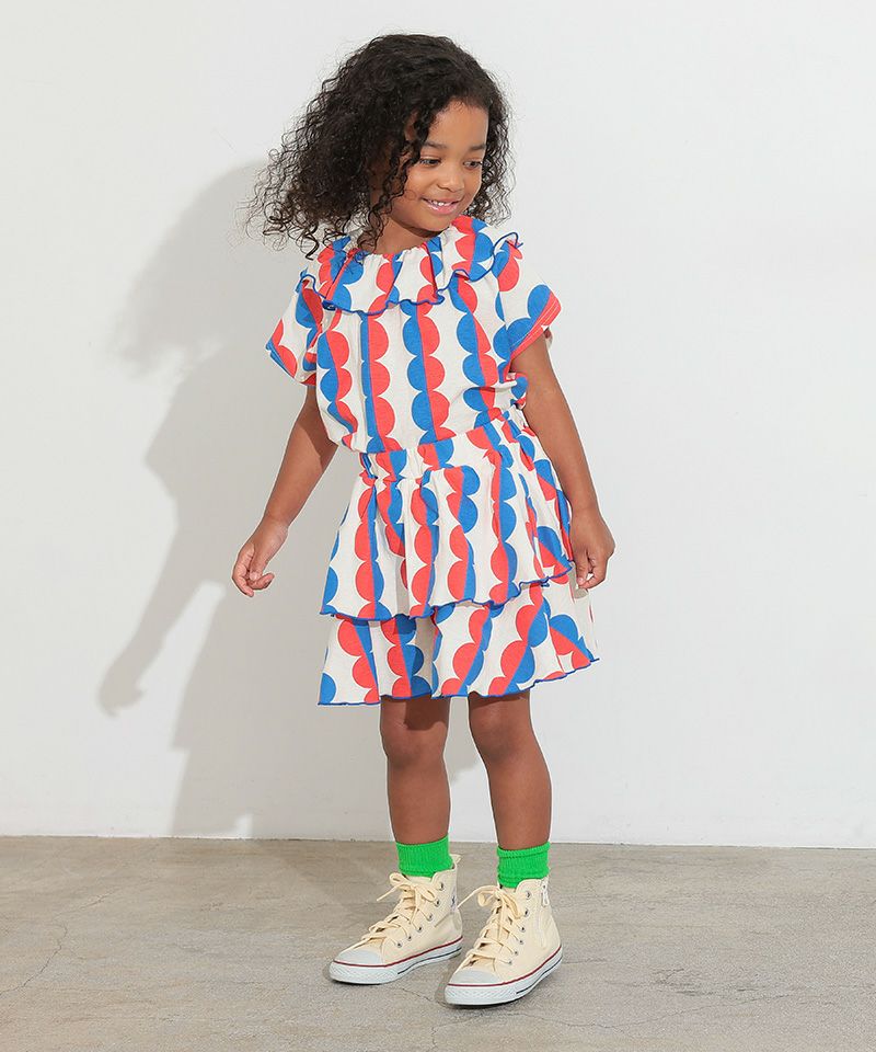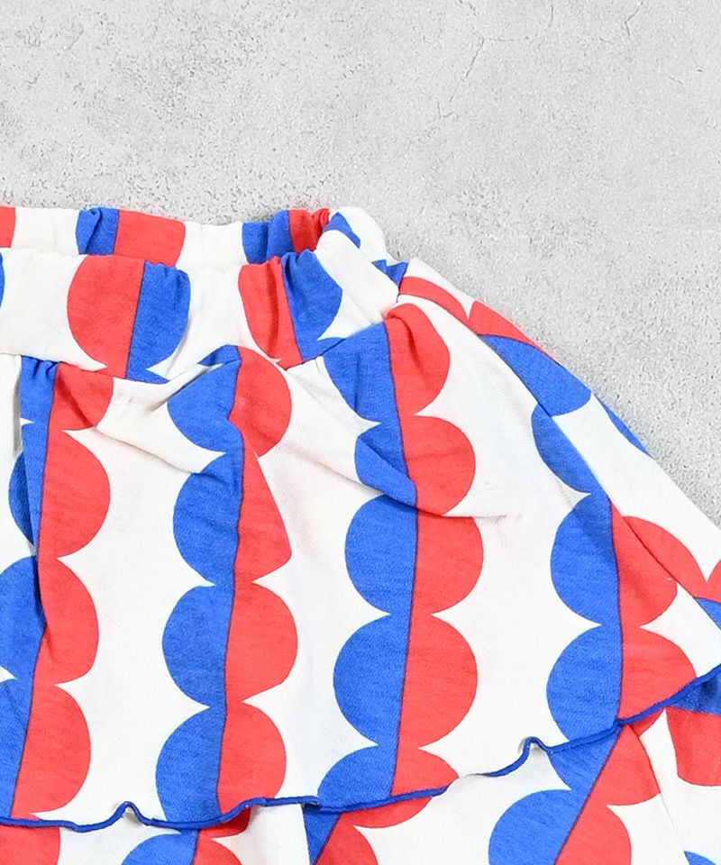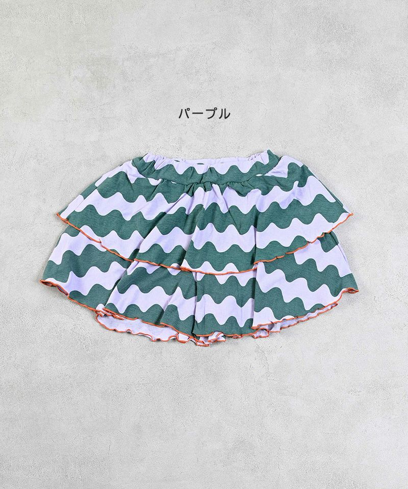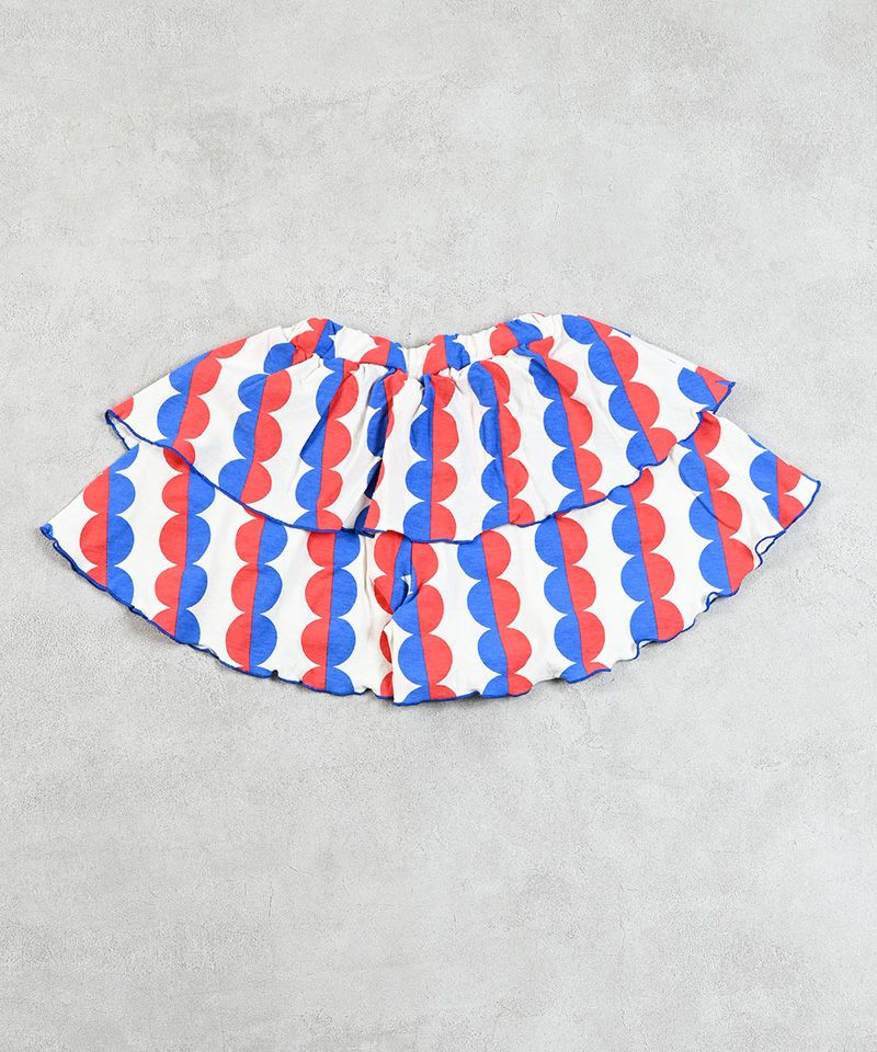 ミニ丈のフリルスカートをはいた様な、ガーリーデザインキュロット。