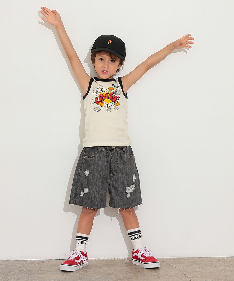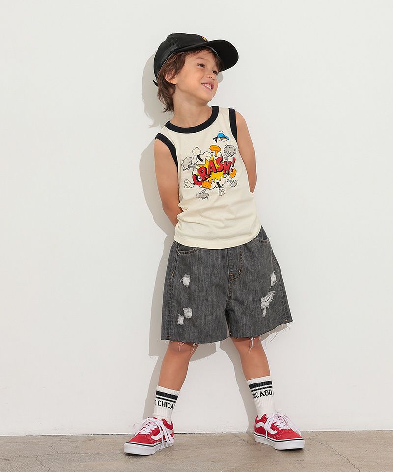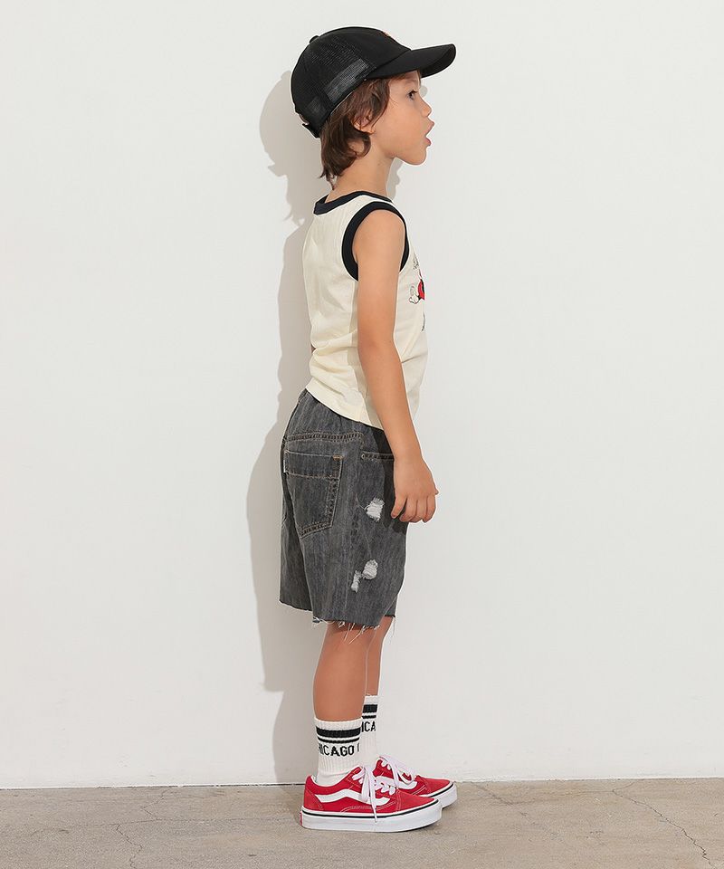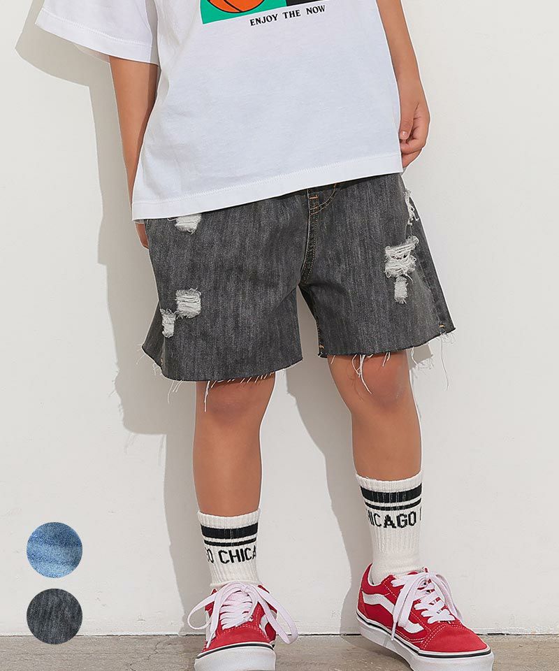 絶妙なダメージ加工が印象的なデニムショーツ。