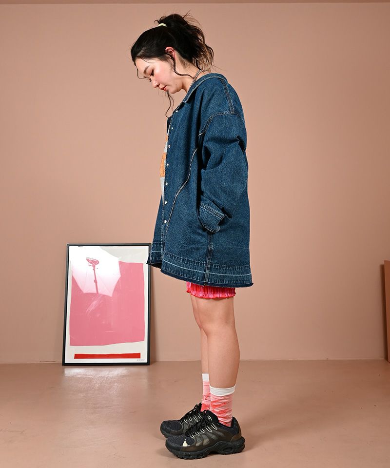 オーバーサイズのTシャツと合わせてカジュアルコーデに♪