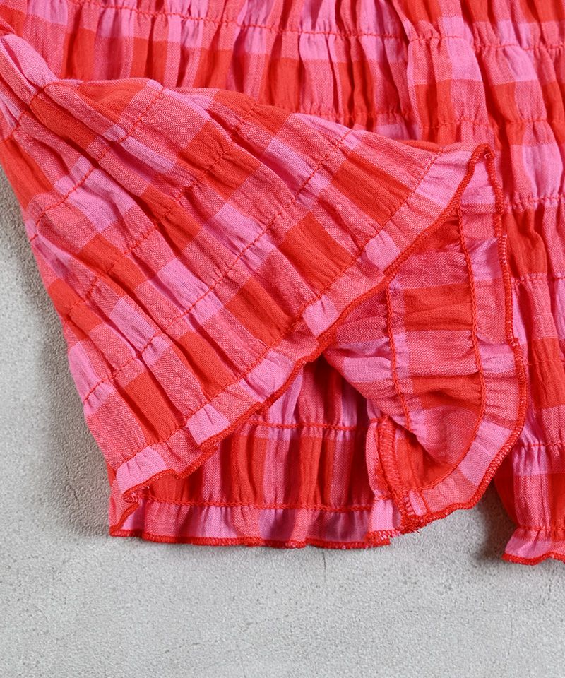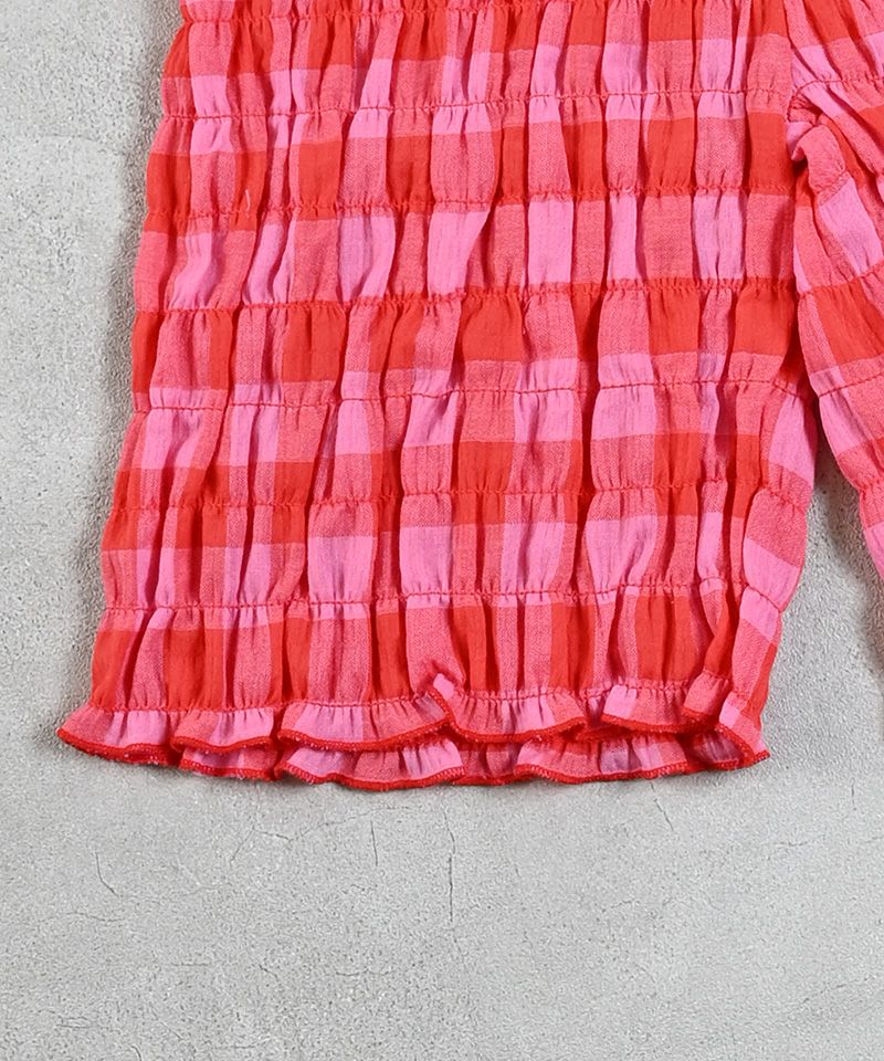 ワンピースに忍ばせてチェック柄をチラ見せでコーデが一気に華やかに◎