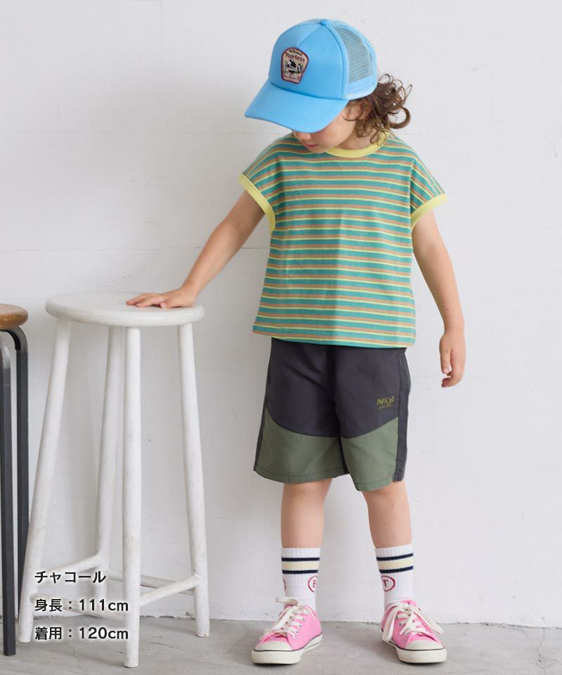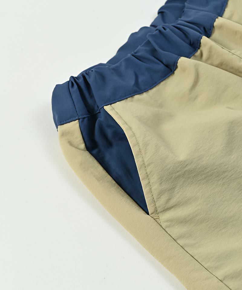 ウエスト部分やポケット、前裾部分の切り替え配色がポイント☆
