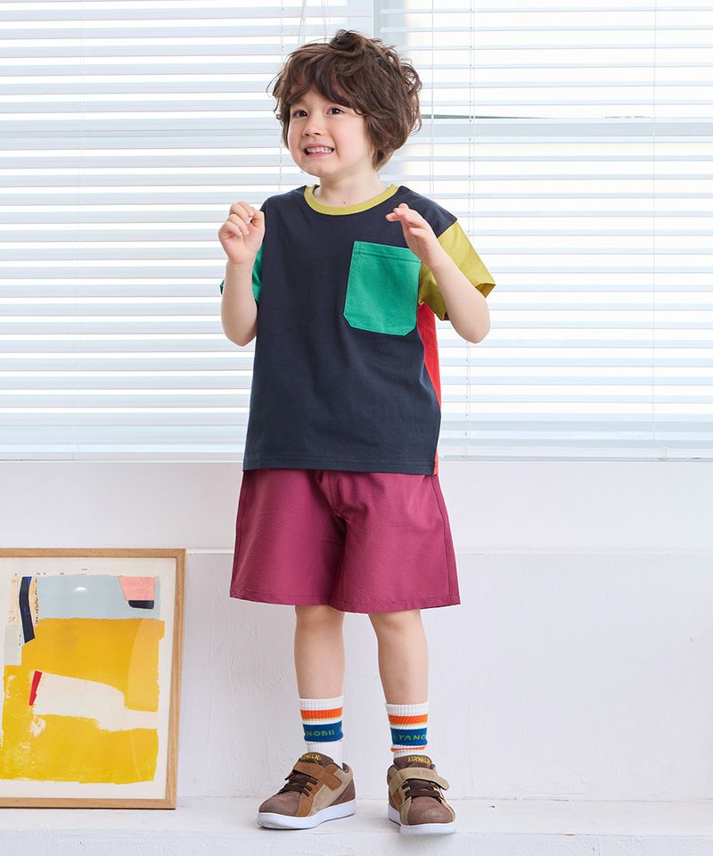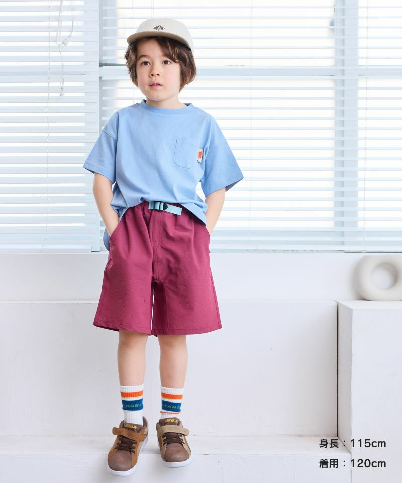 サイドのカラーテープがポイントのショートパンツ。