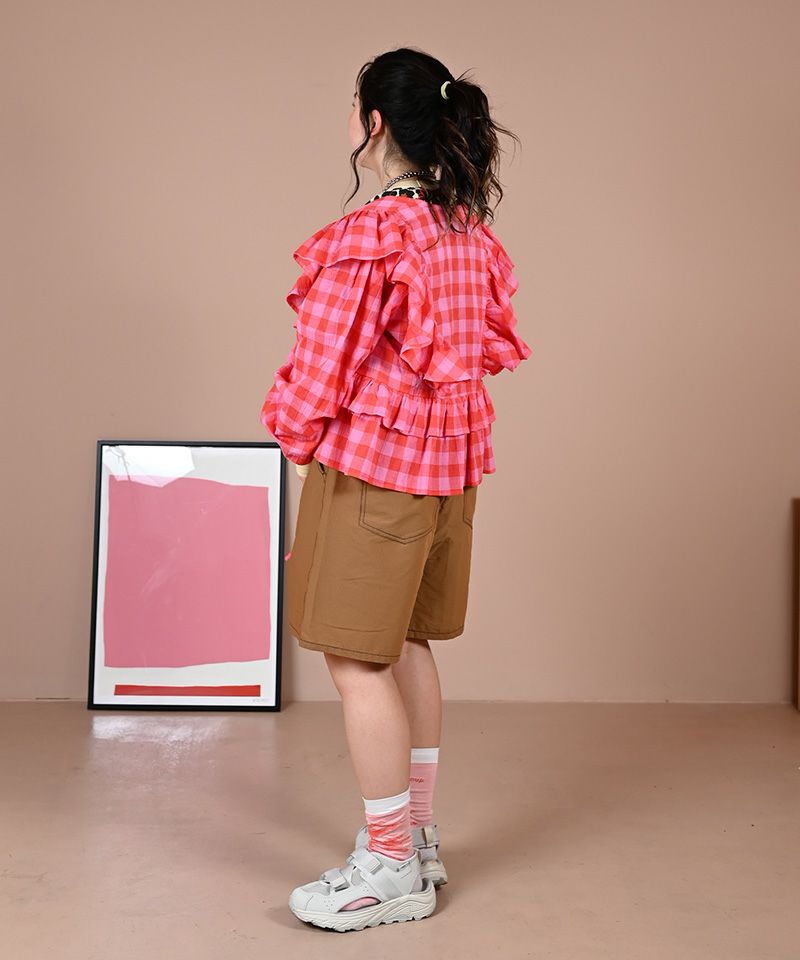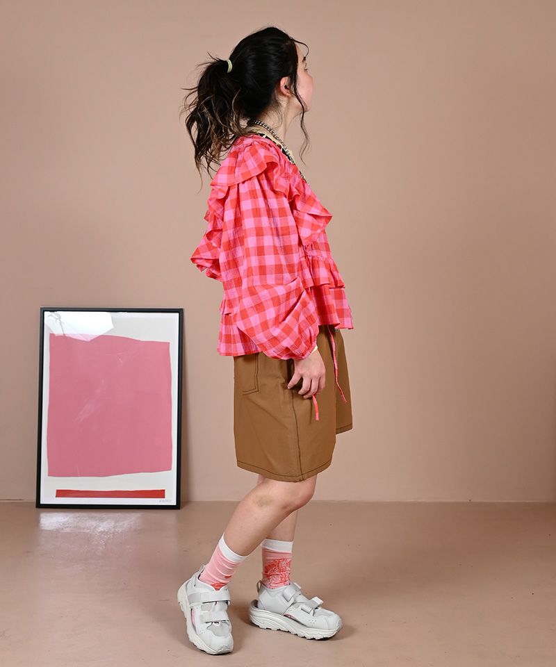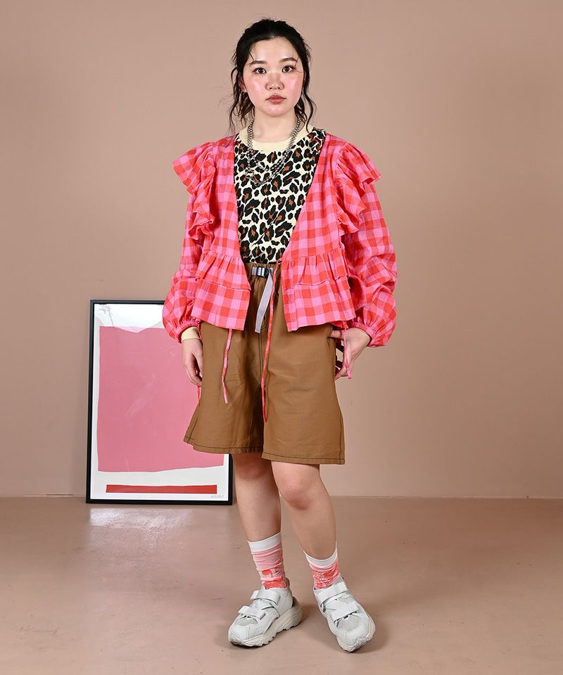 ウエストの中央部分には、コーデのアクセントになる飾りベルト付き!