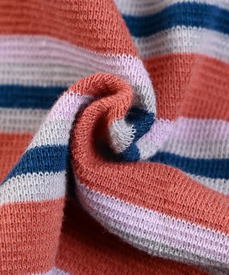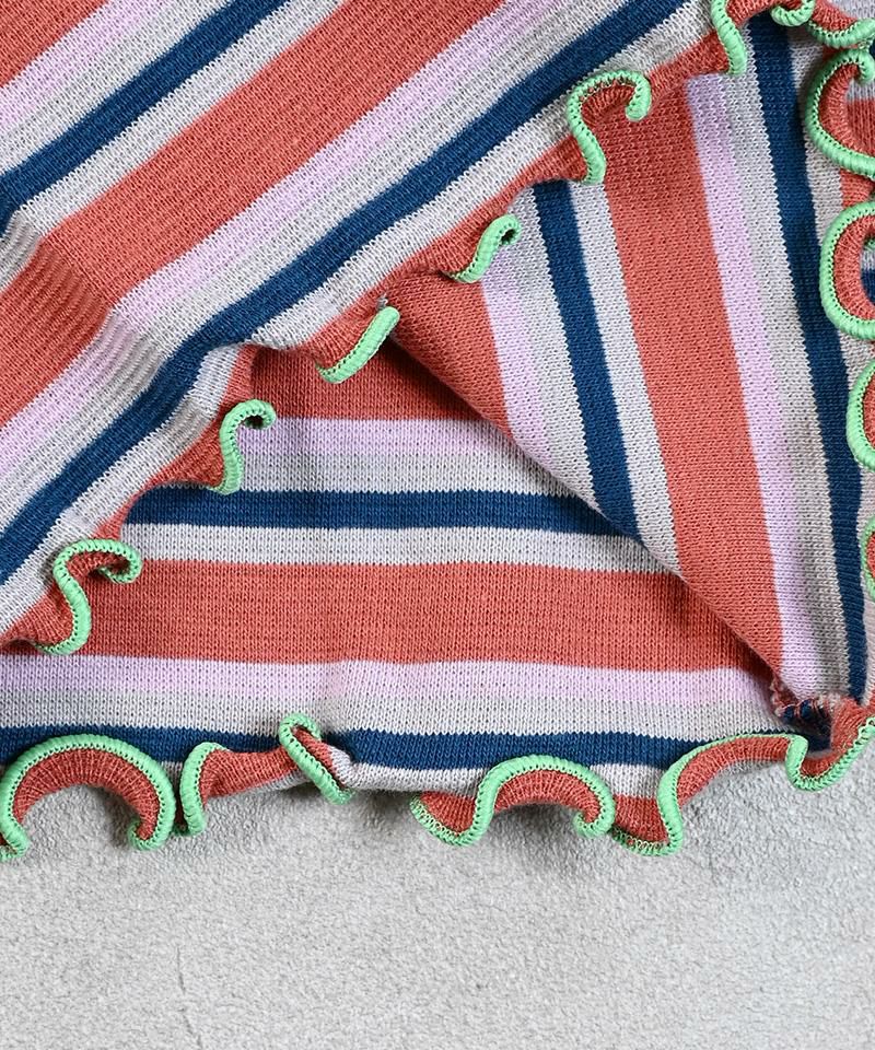 配色ボーダーと裾のメローが目を引くアイテムです。