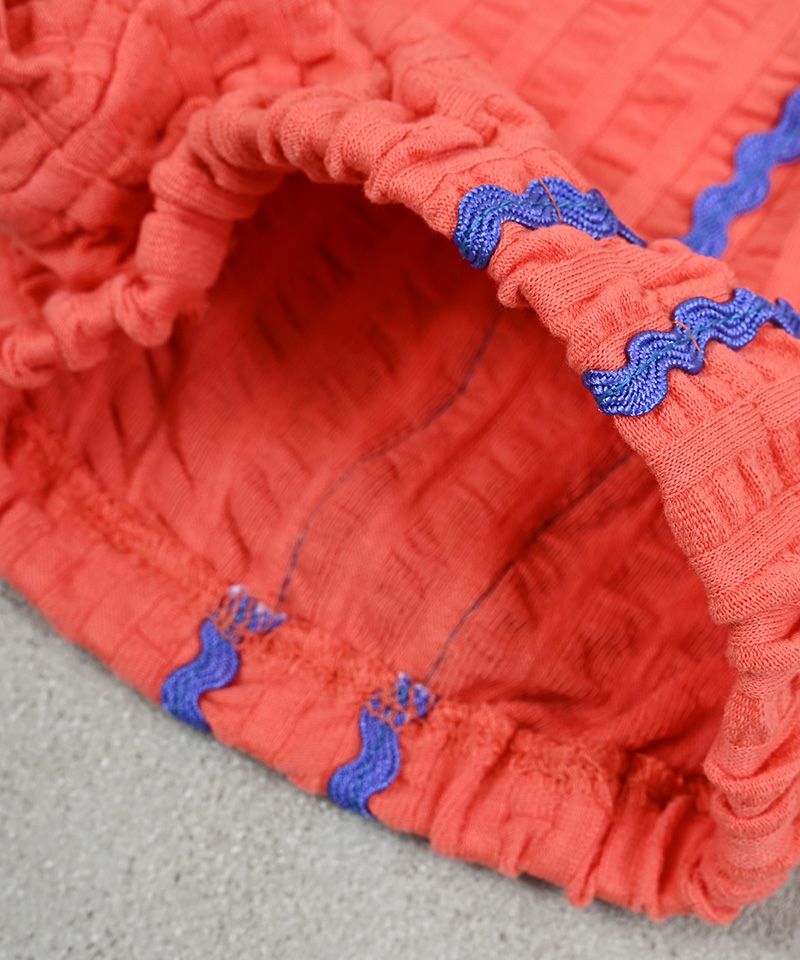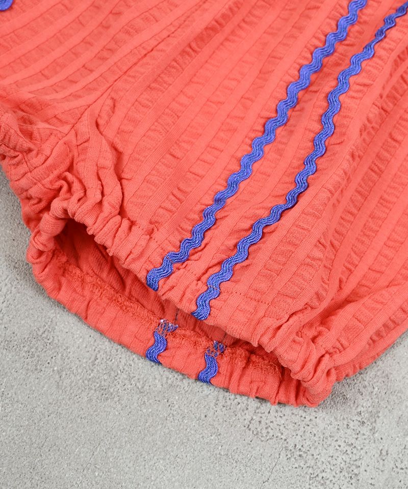 表情のあるニットサッカー素材に、前後のナミナミテープがアクセント。