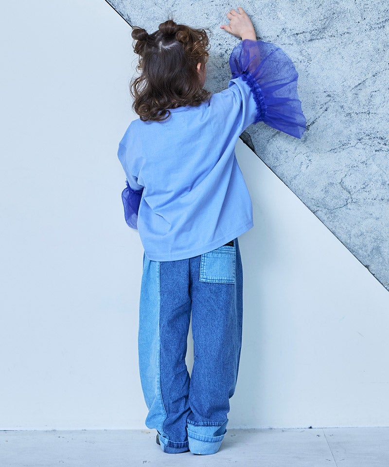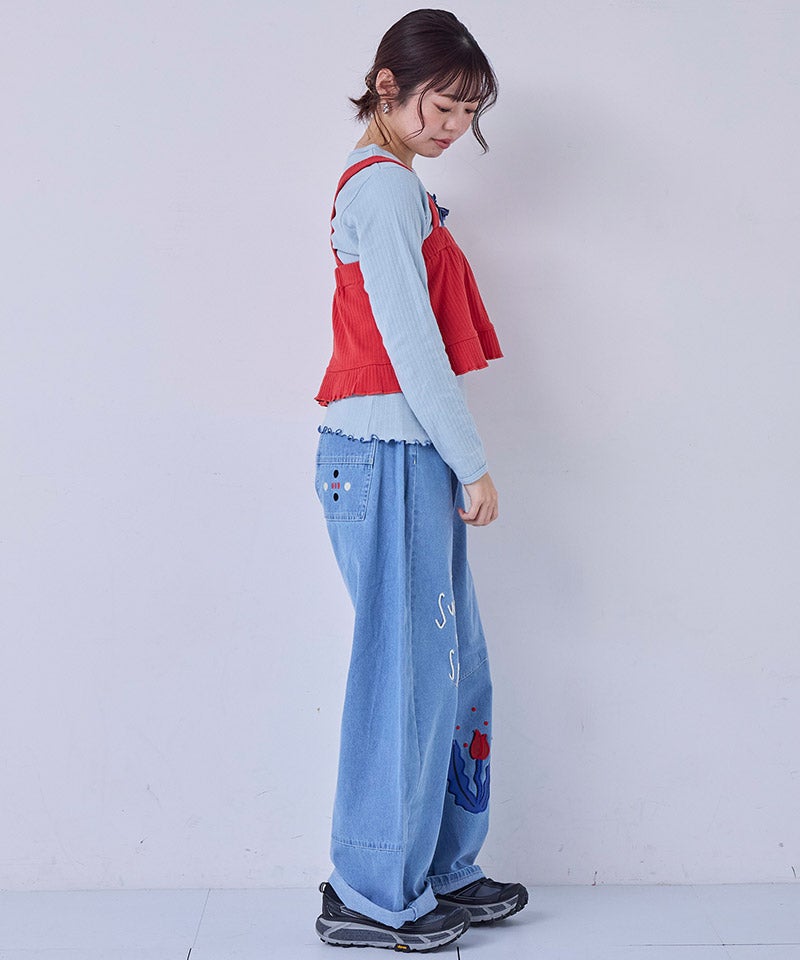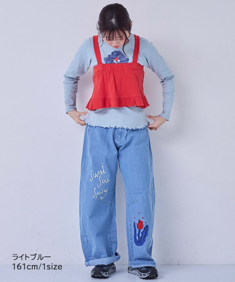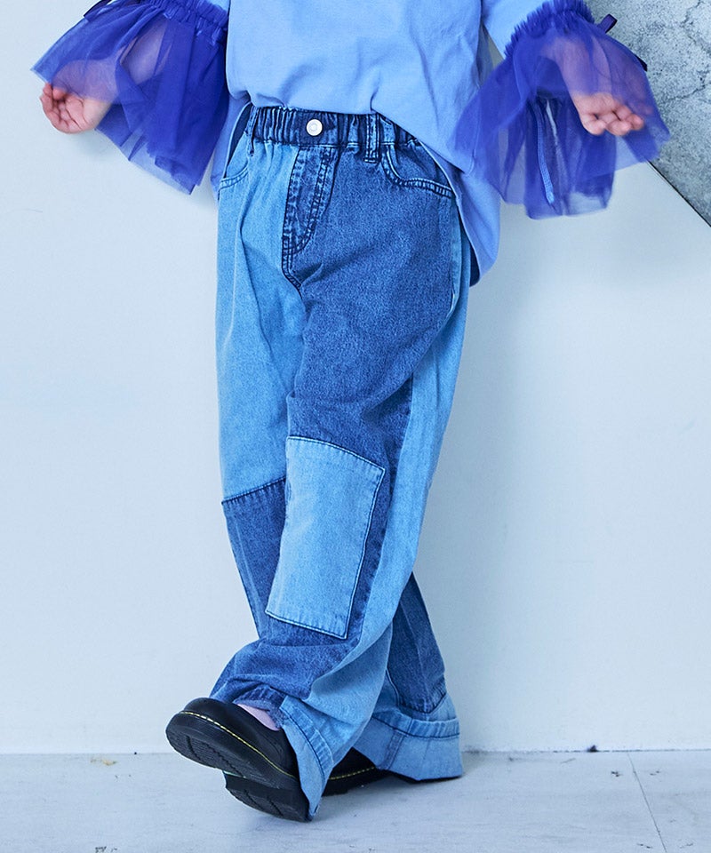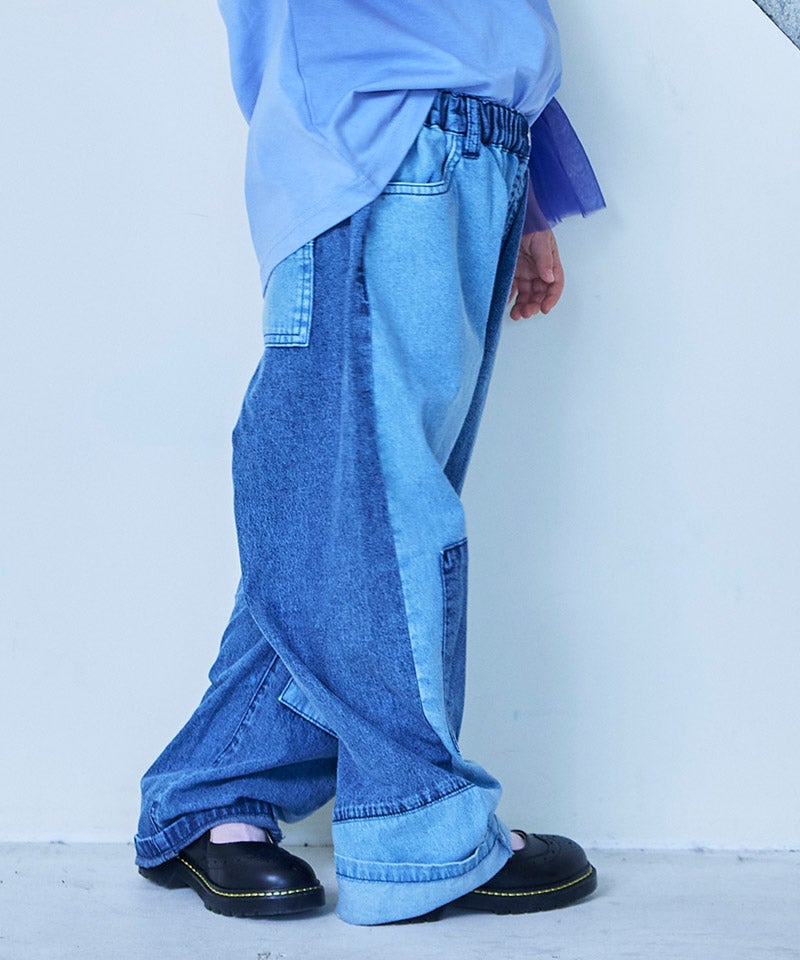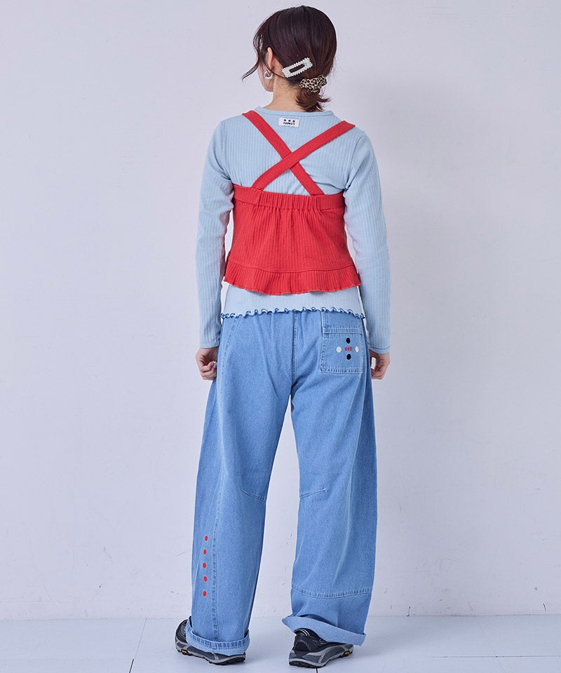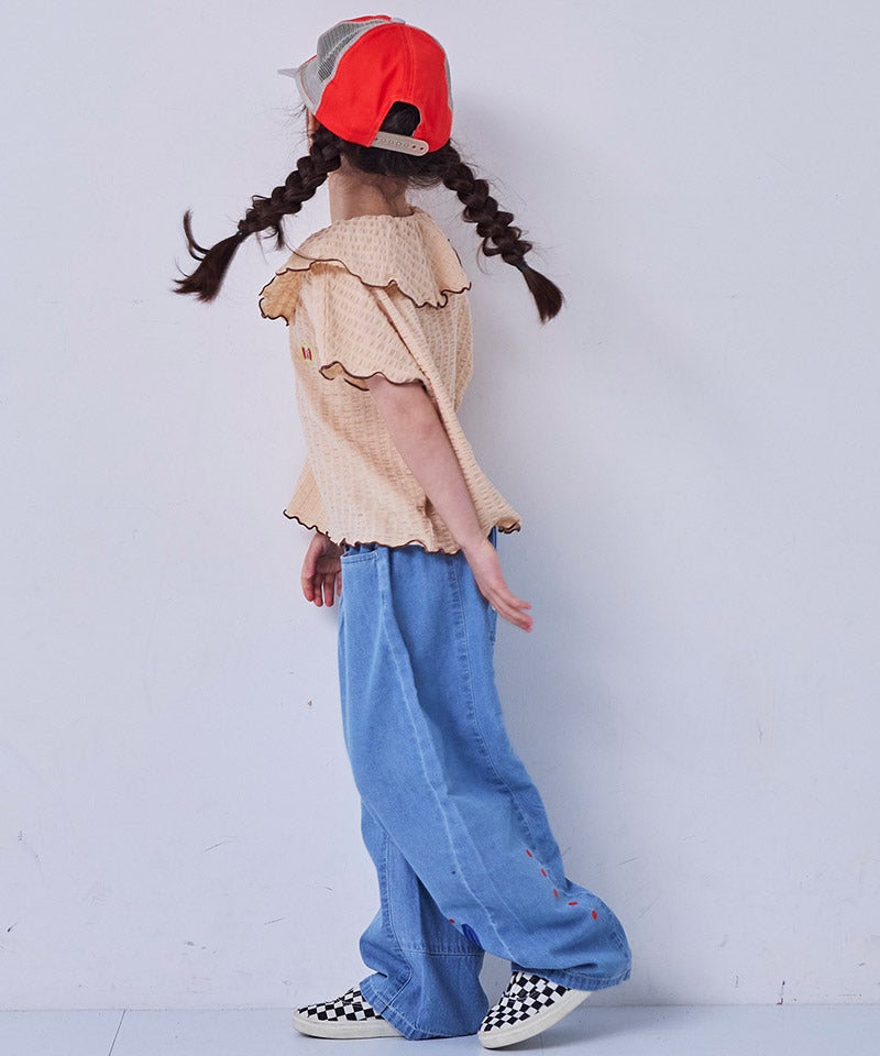 【親子お揃い】デニムサイドフリルバギーパンツ