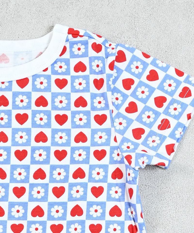 Heart&Flower柄:ハートとお花のモチーフが入ったチェッカー柄がポップで可愛い柄。