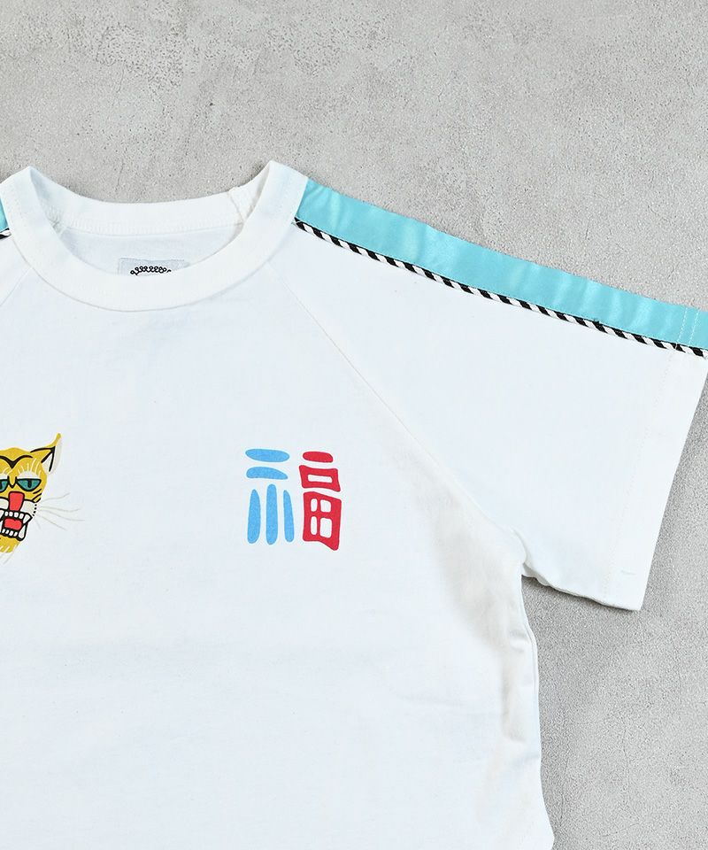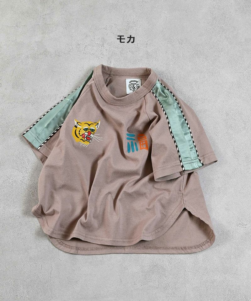 スカジャン風ディテールを施した袖のサテンラインとコードパイピングがポイント。