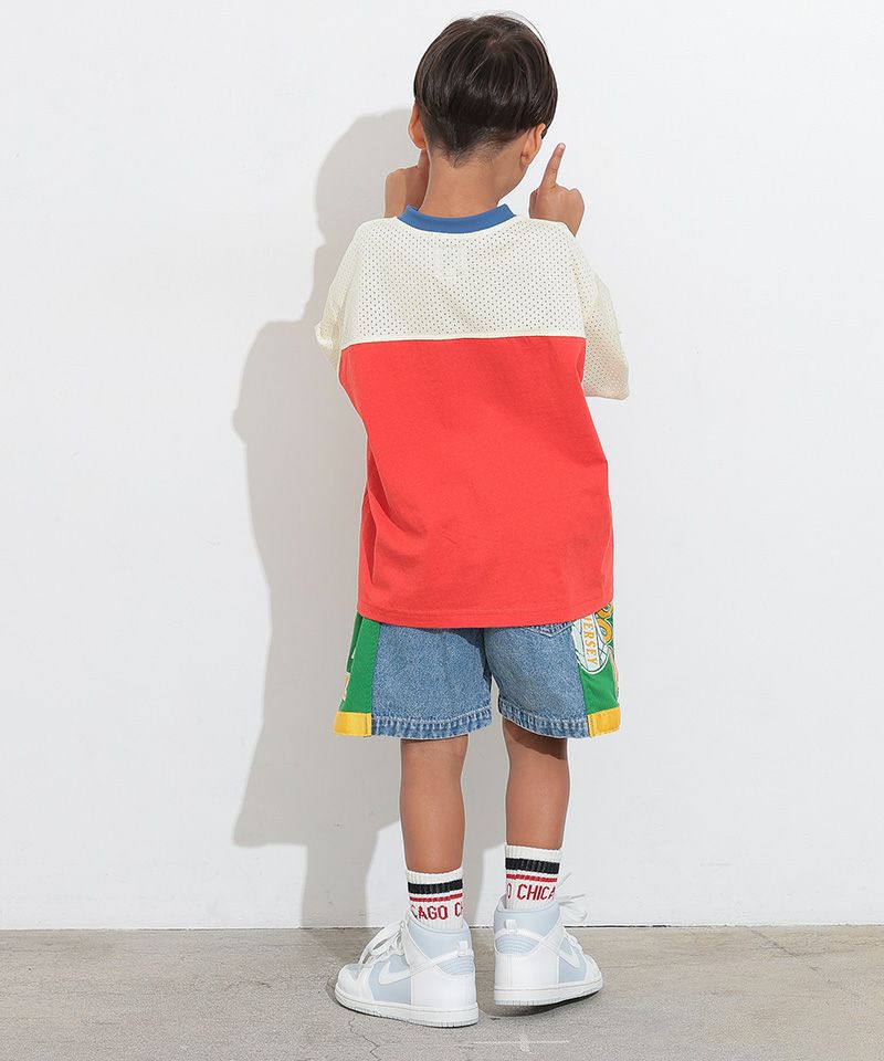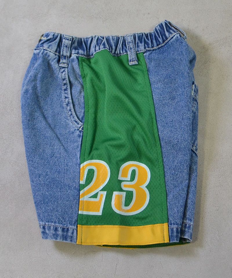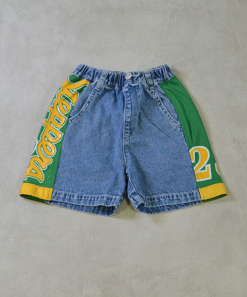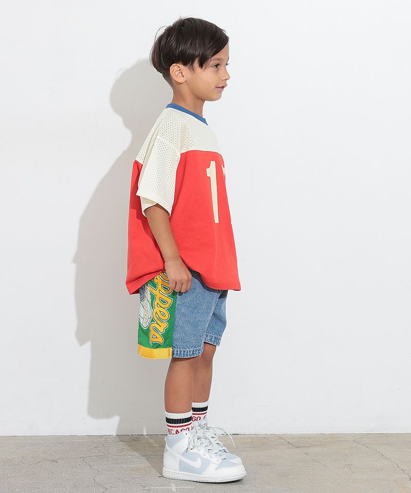 メッシュのユニフォームを両サイドに大胆に切り替えた、リメイクショーツ。
