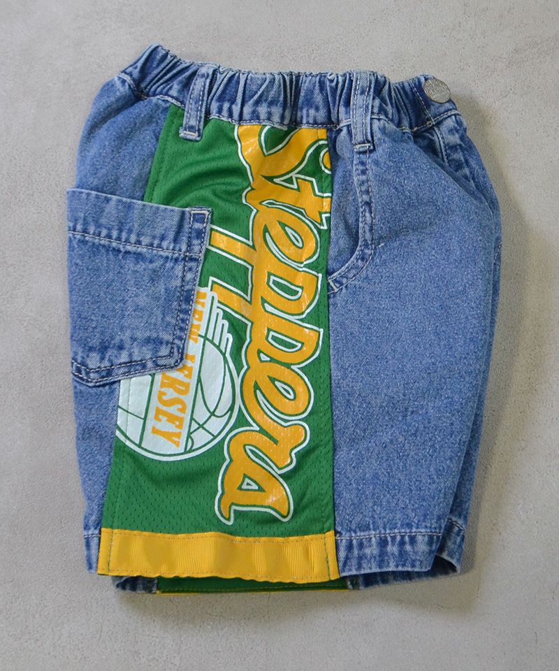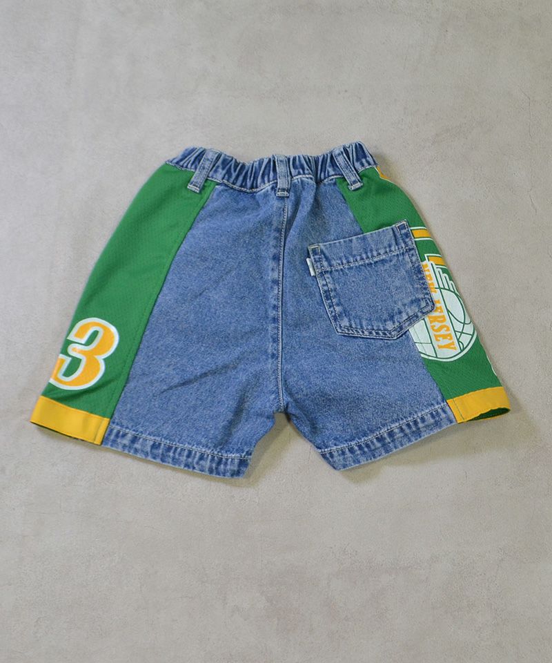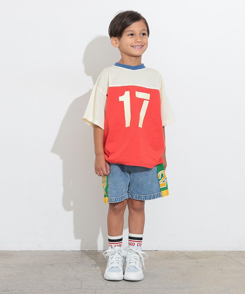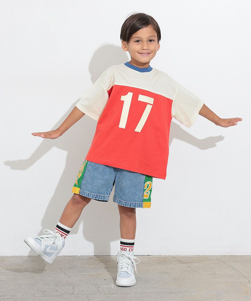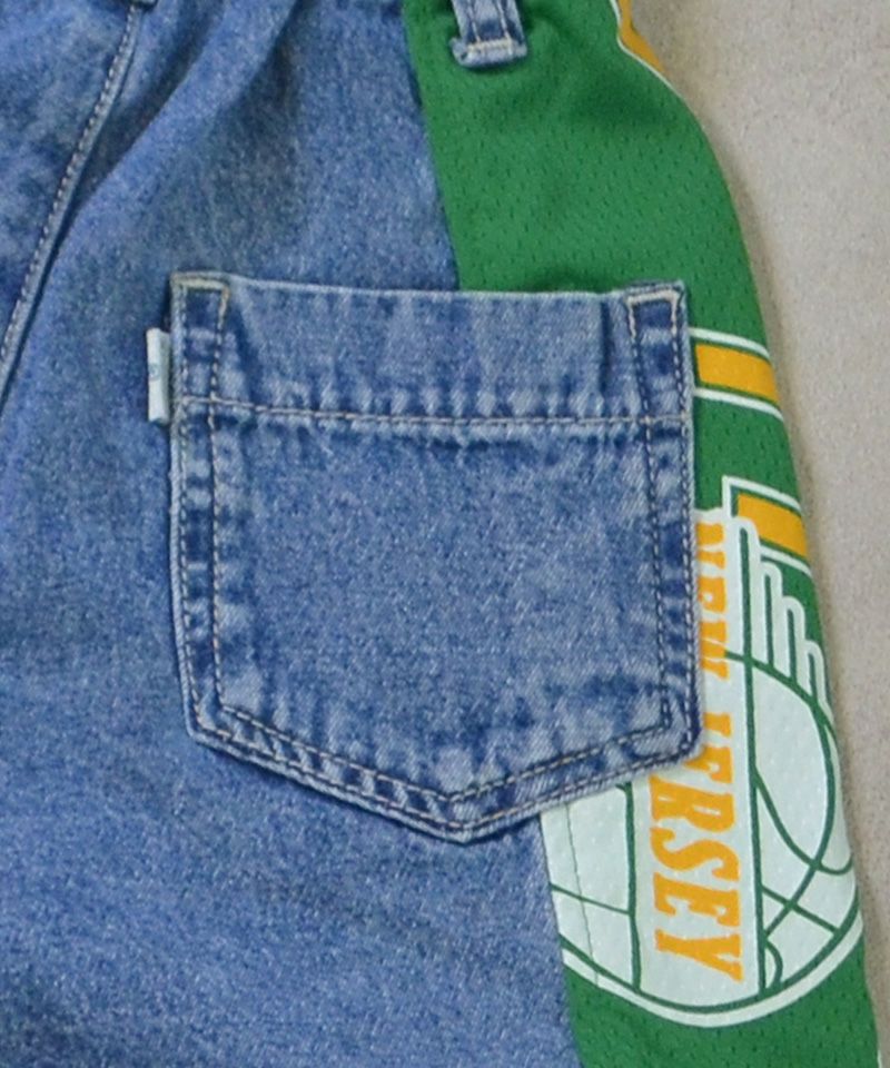 メッシュのユニフォームを両サイドに大胆に切り替えた、リメイクショーツ。
