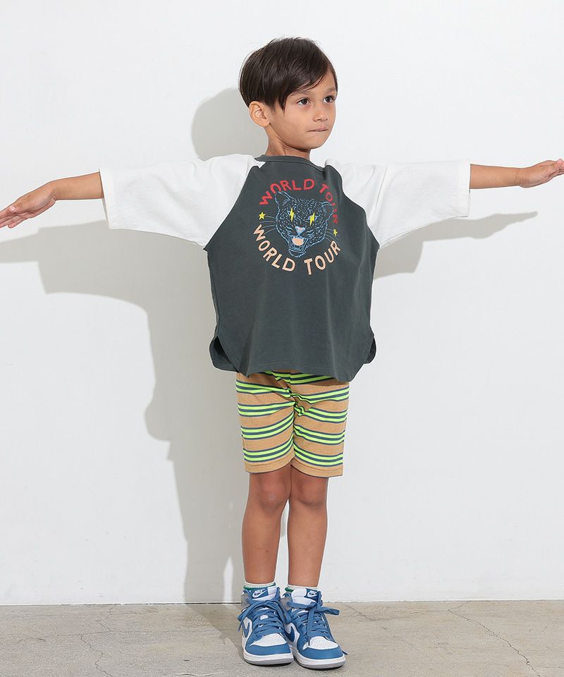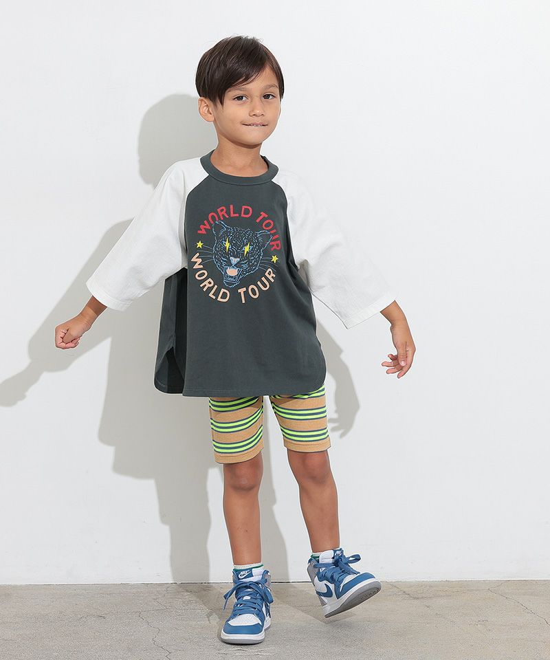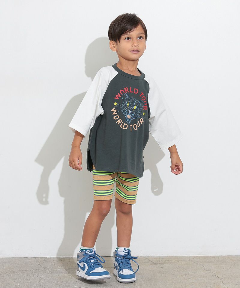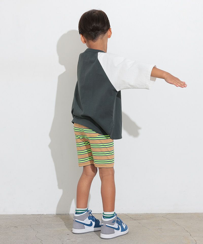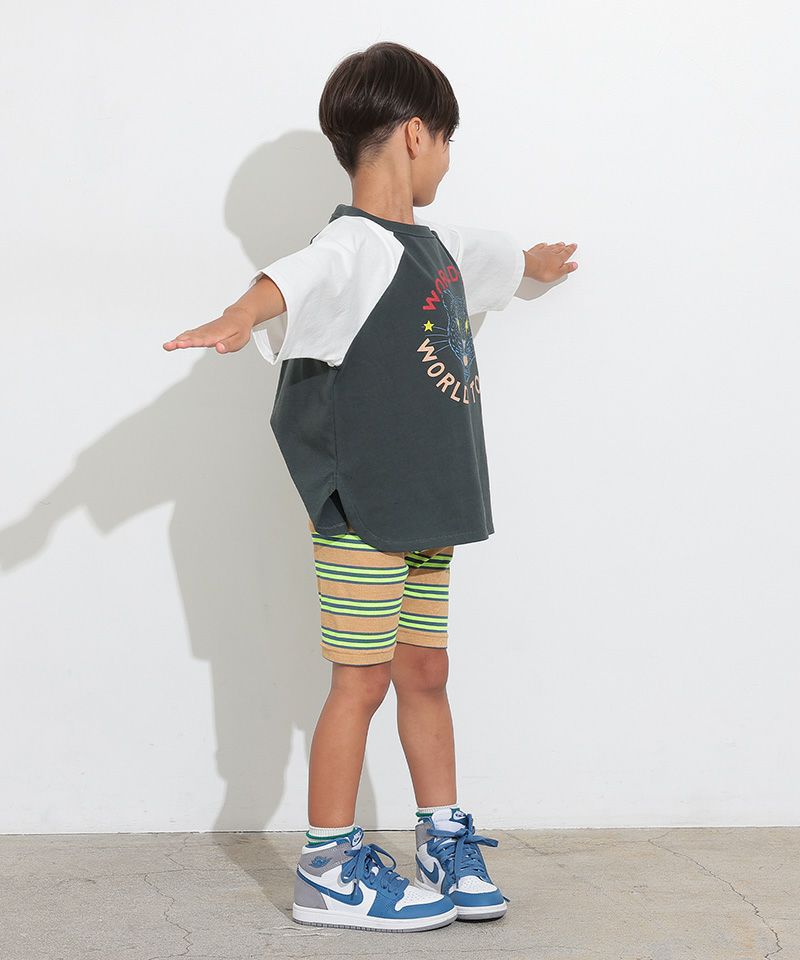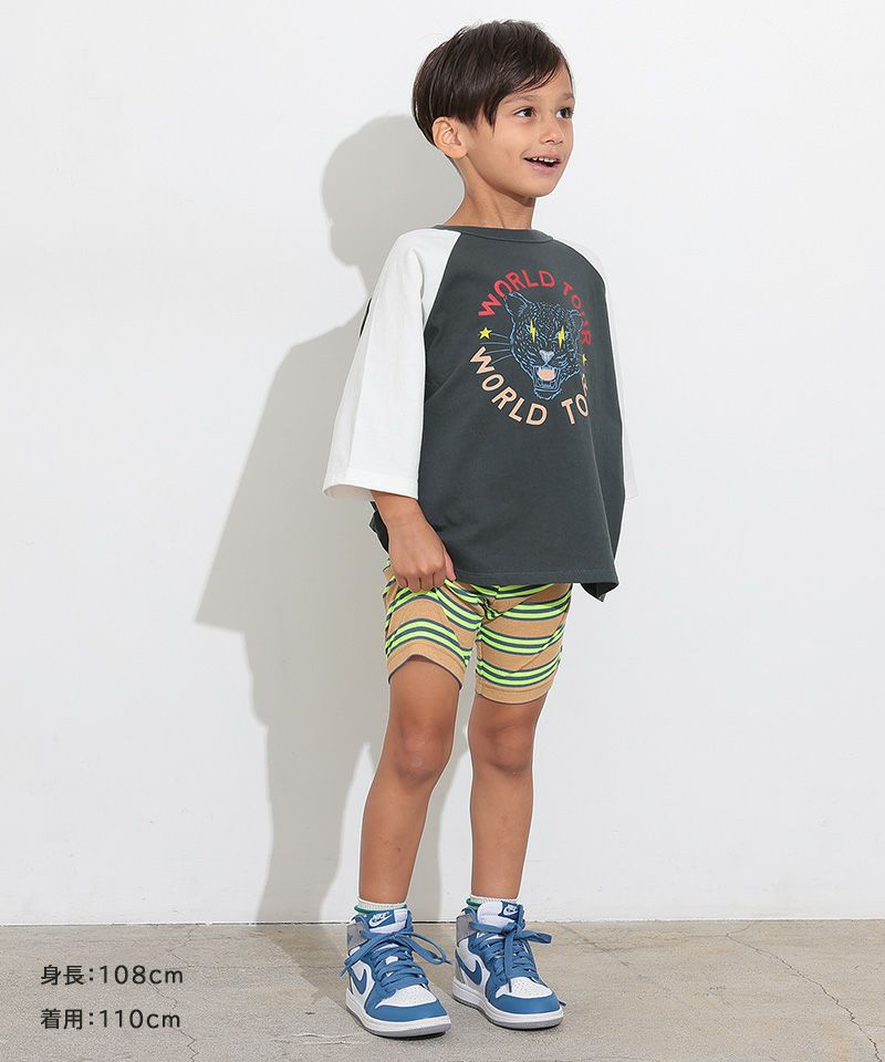 伸縮性が良いボーダー生地のサイクルショーツ。