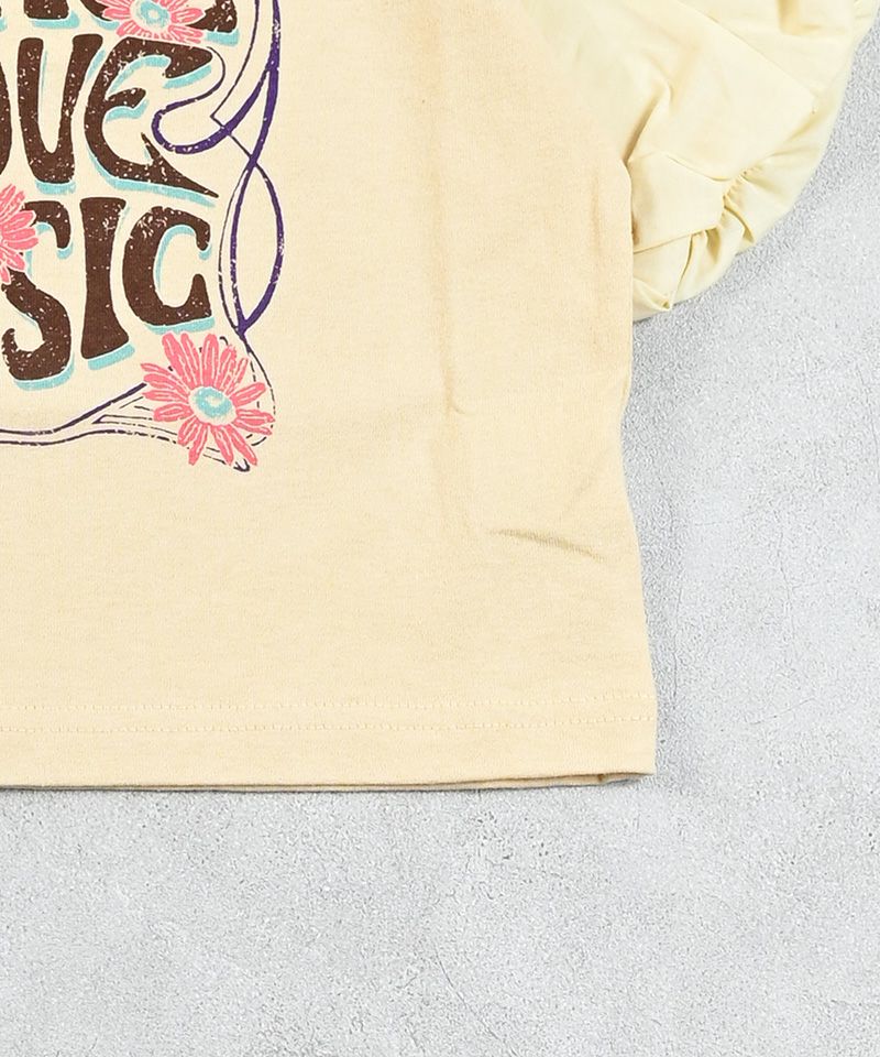 ふんわりとしたボリュームバルーンスリーブが着映えする、プリントTシャツ。