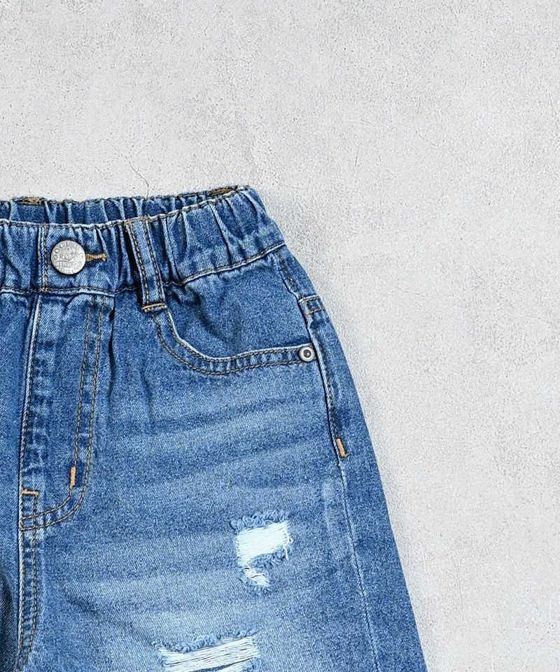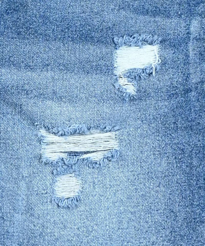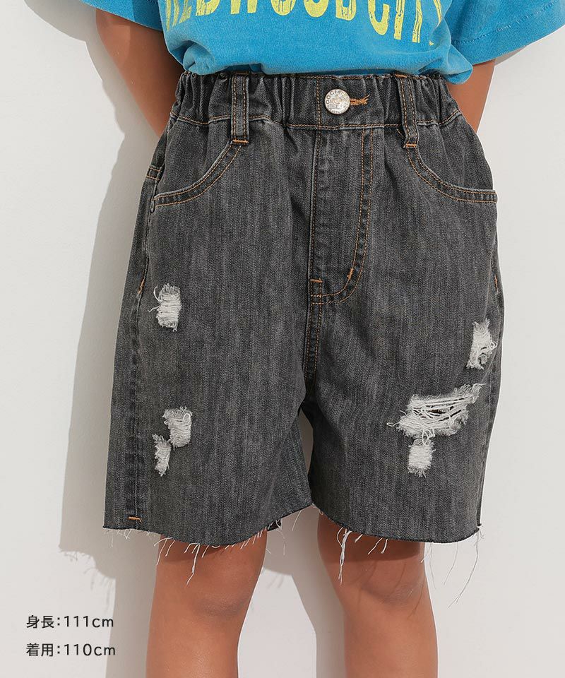 絶妙なダメージ加工が印象的なデニムショーツ。