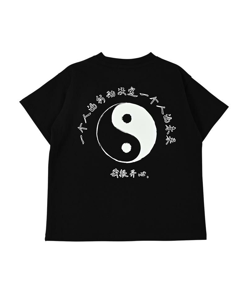 バックプリントの陰陽のモチーフが目を引きます。