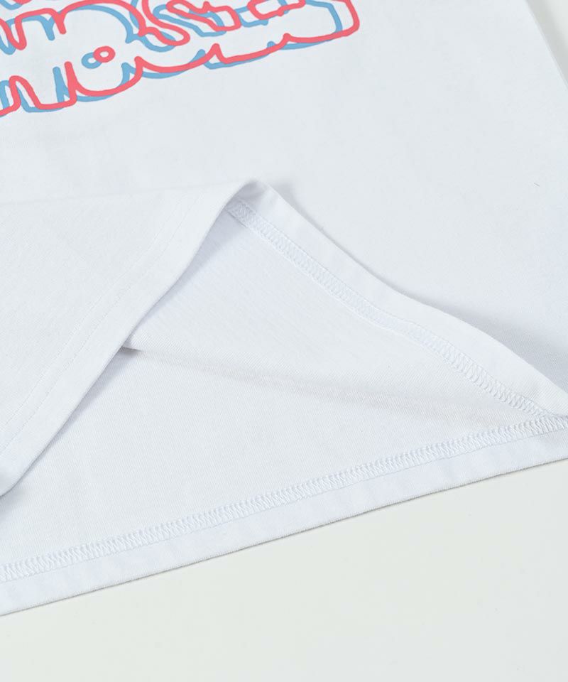 フロントには独特なカラーでプリントされたまぁるいフォルムのブランドネーム。