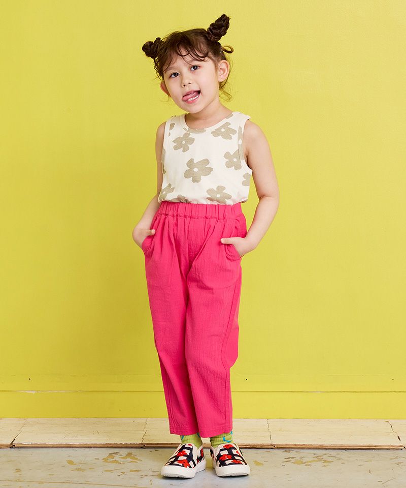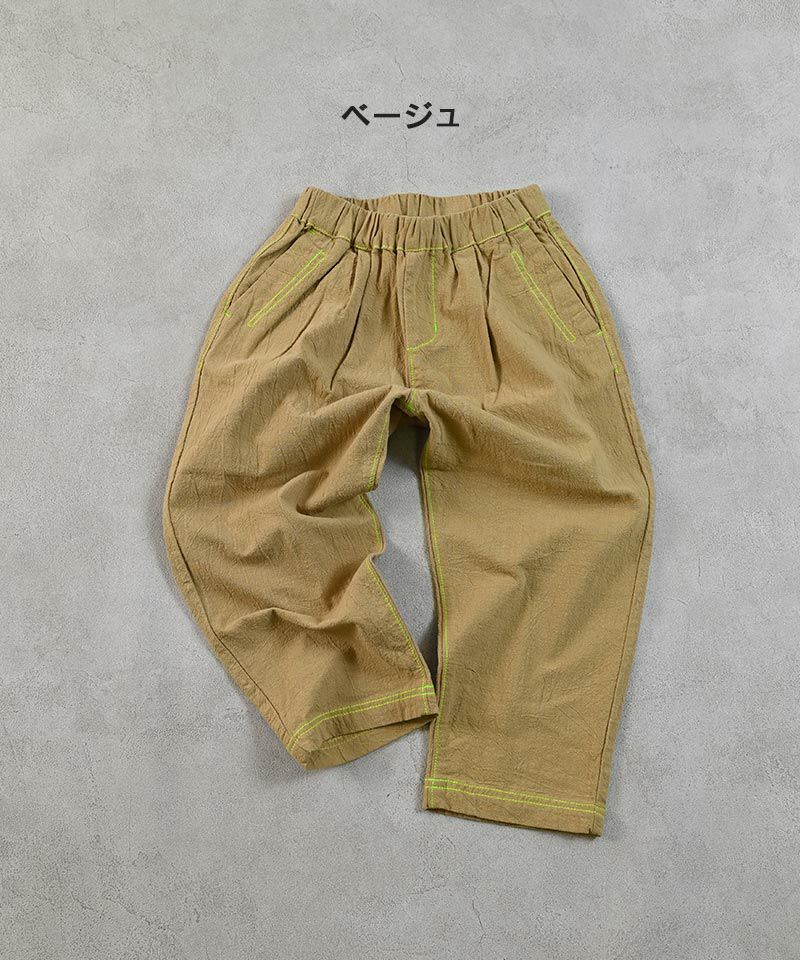 色鮮やかなカラーとソウガラが印象的なパンツ。