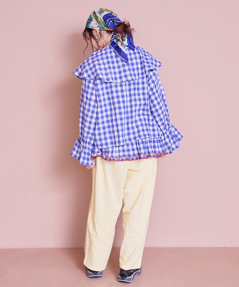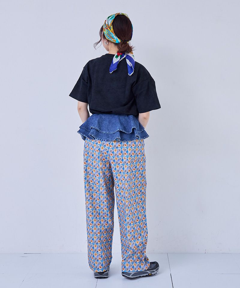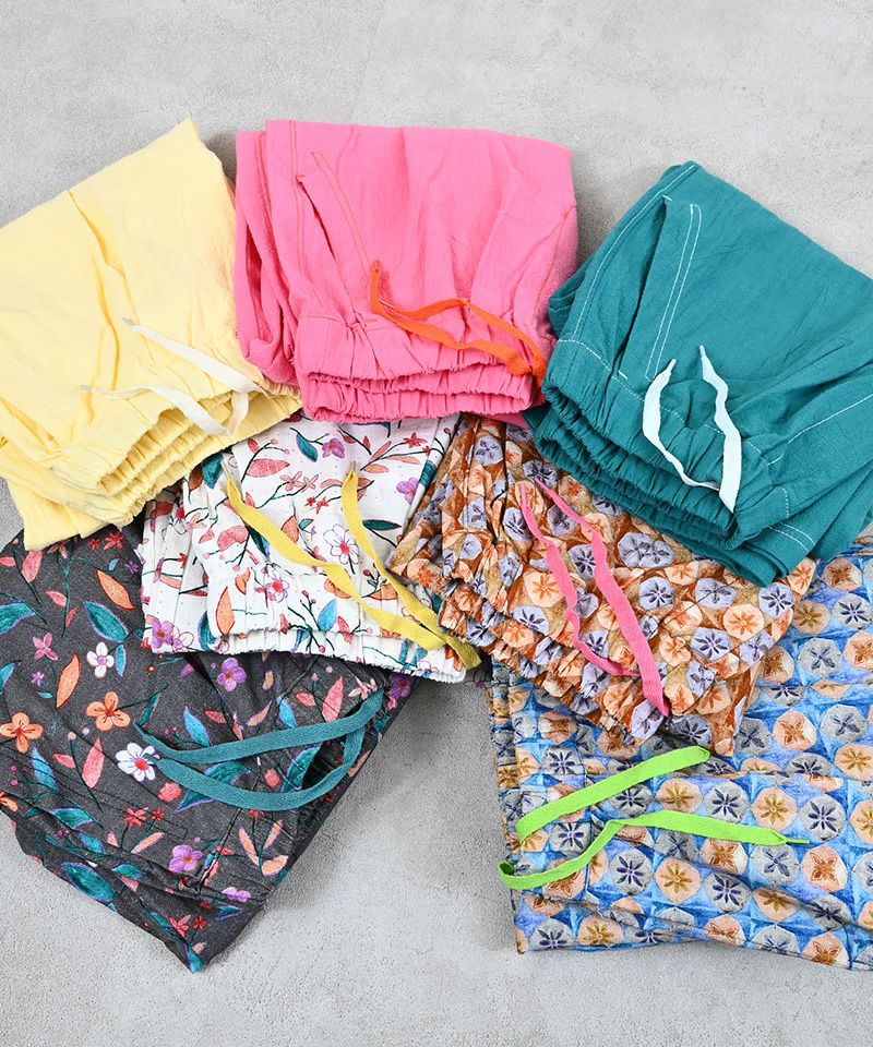 色鮮やかなカラーとソウガラが印象的なパンツ。
