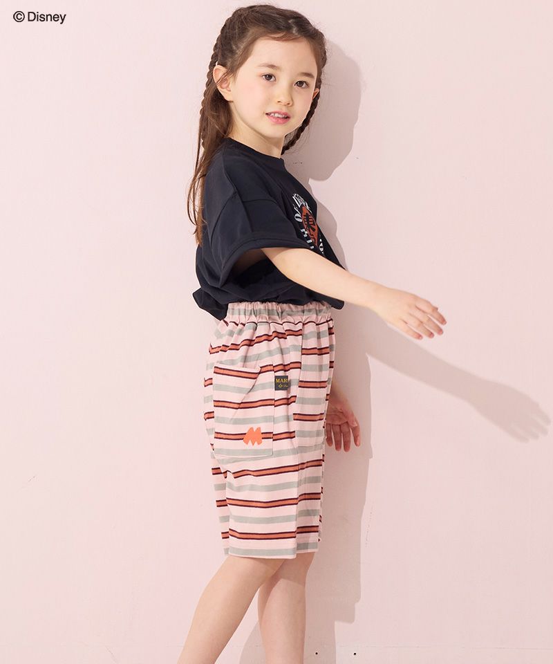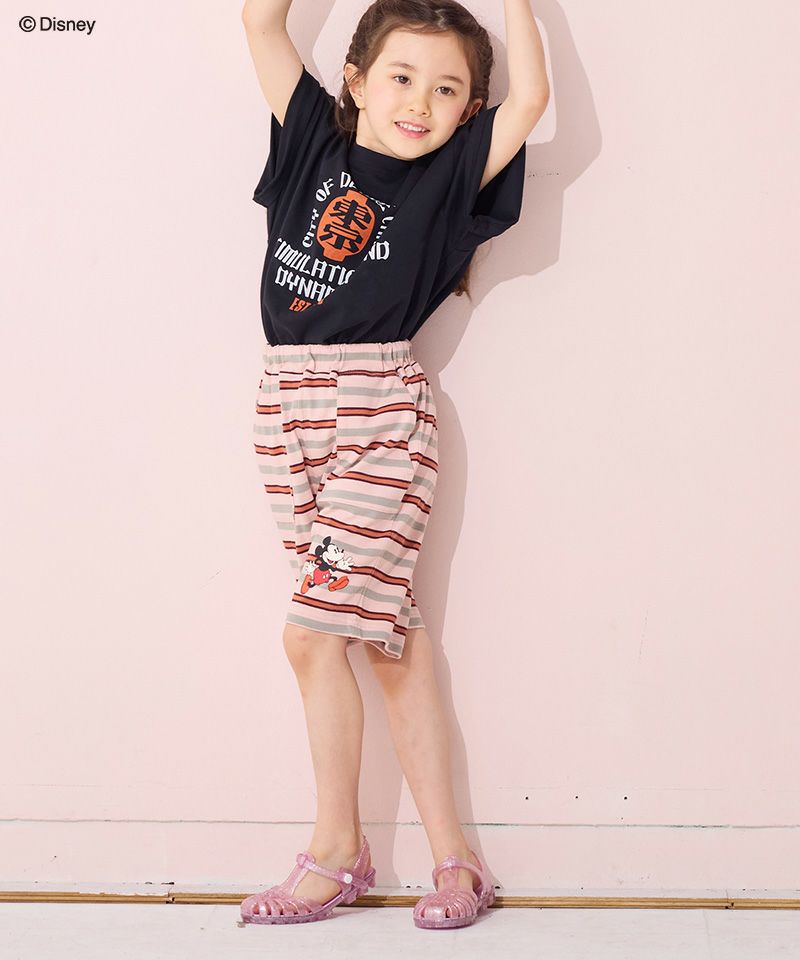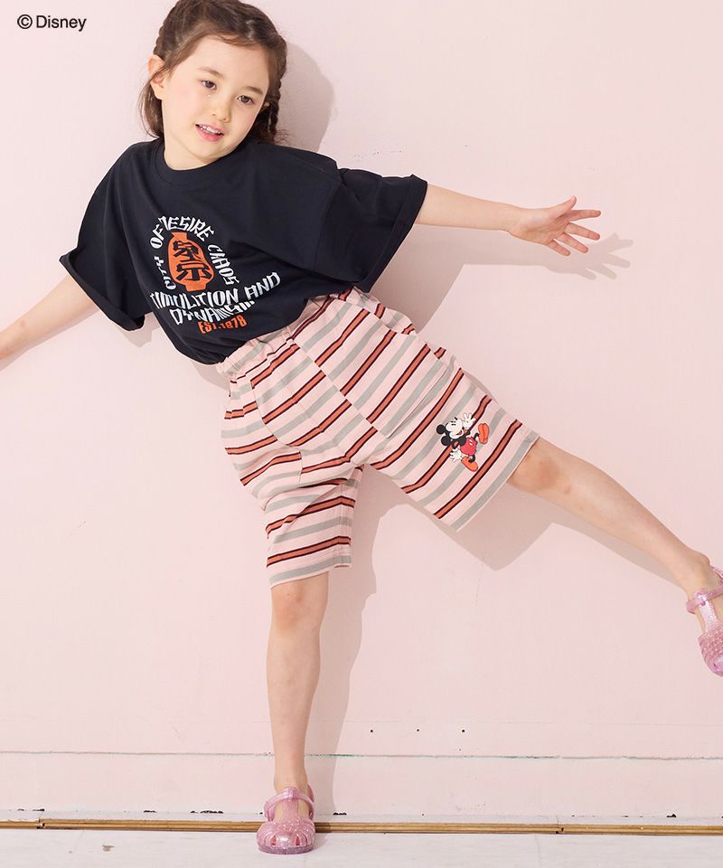 フロントのミッキーマウスのプリントがコーデの主役。
