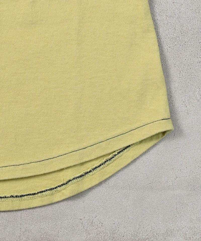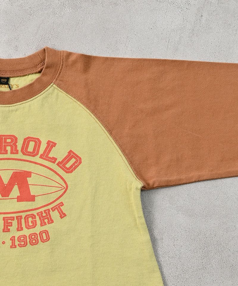 色褪せ感とラグランデザインが古着のような雰囲気を演出。