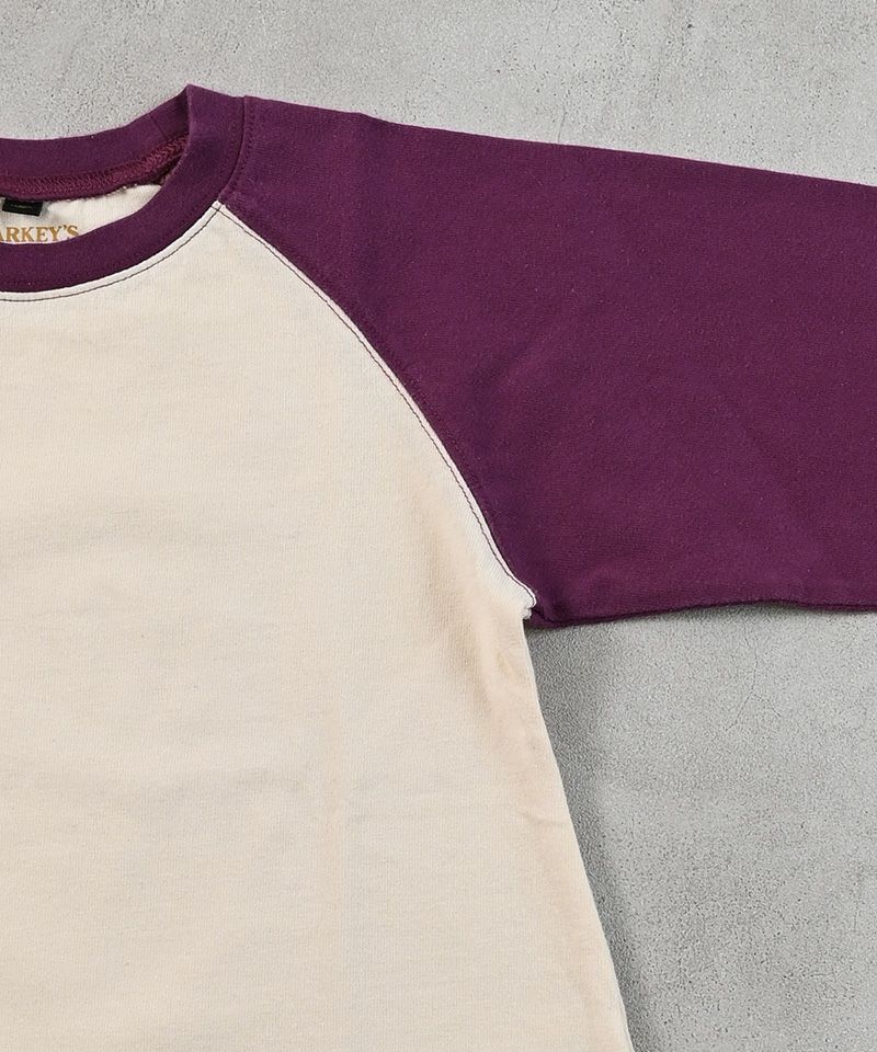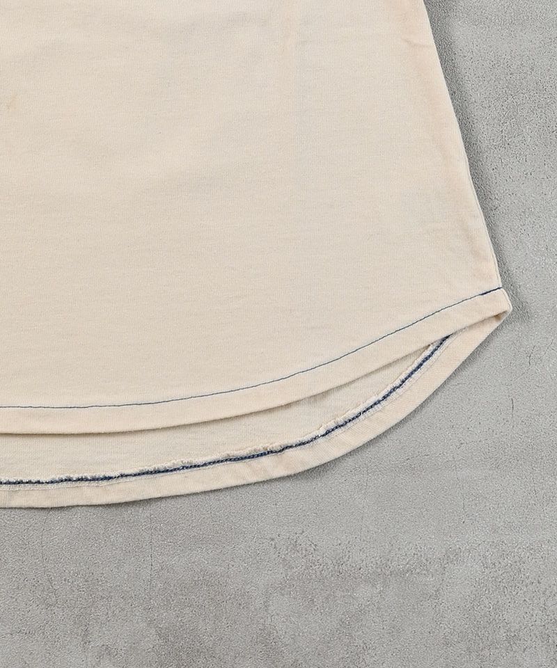 色褪せ感とラグランデザインが古着のような雰囲気を演出。