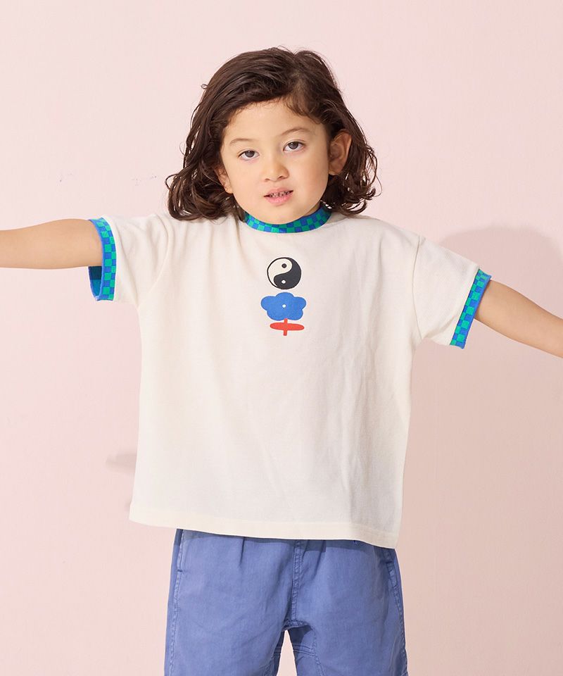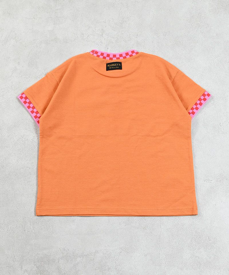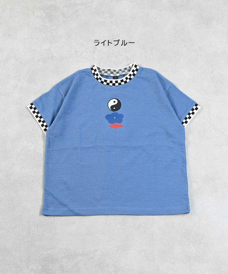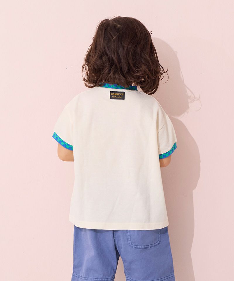 カラーとチェッカーラインが目を引くので、シンプルなボトムスでコーデが完成します。