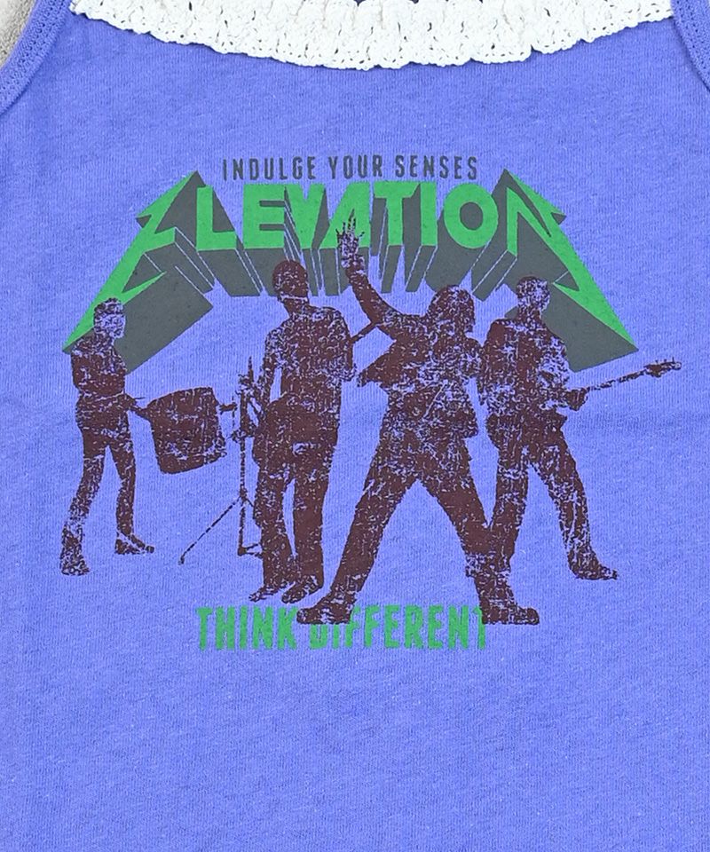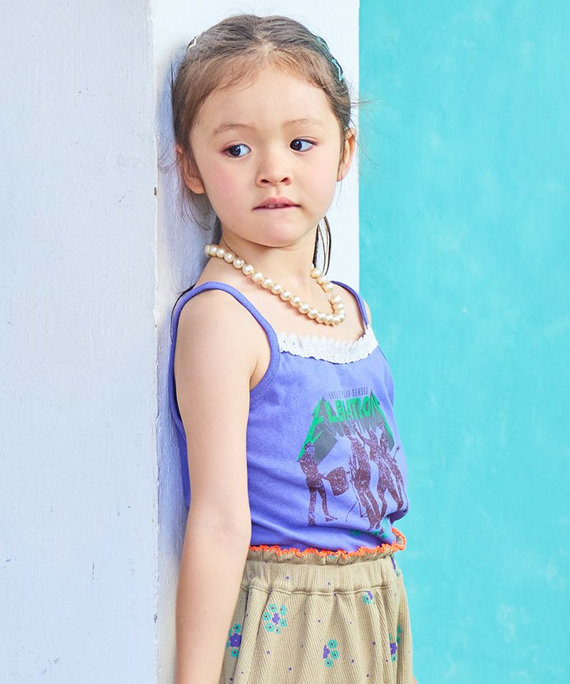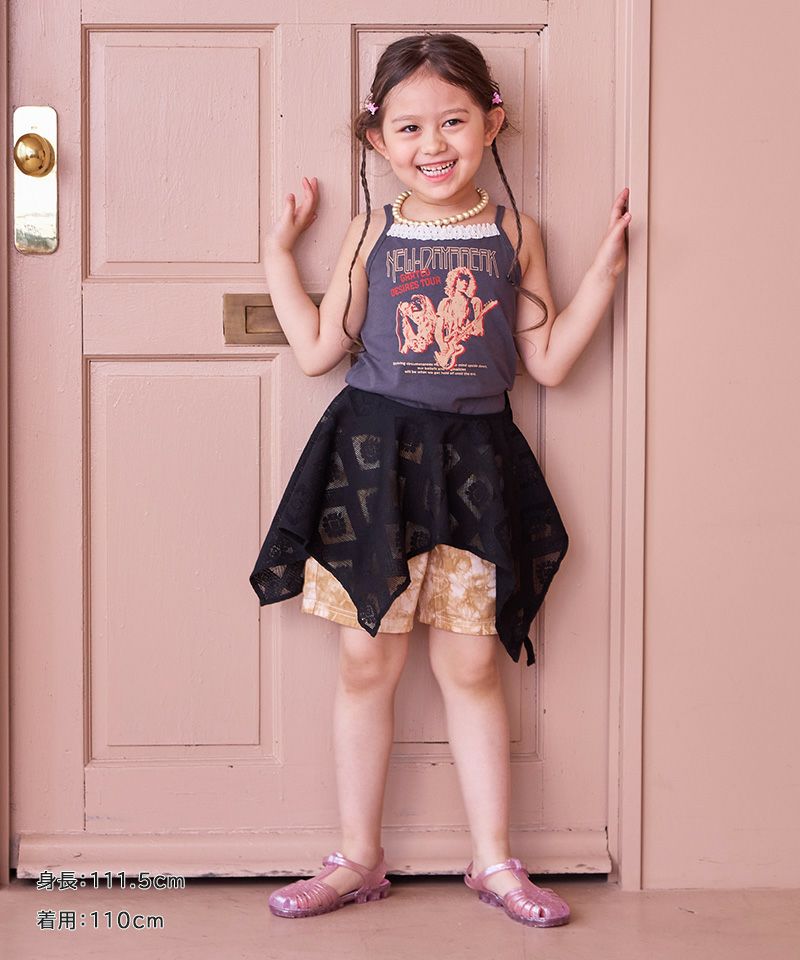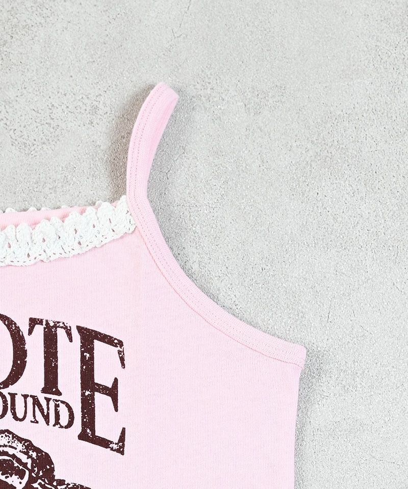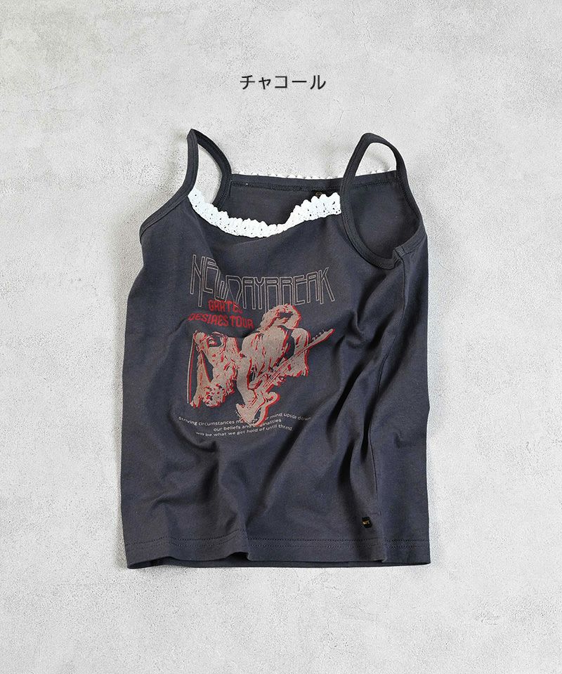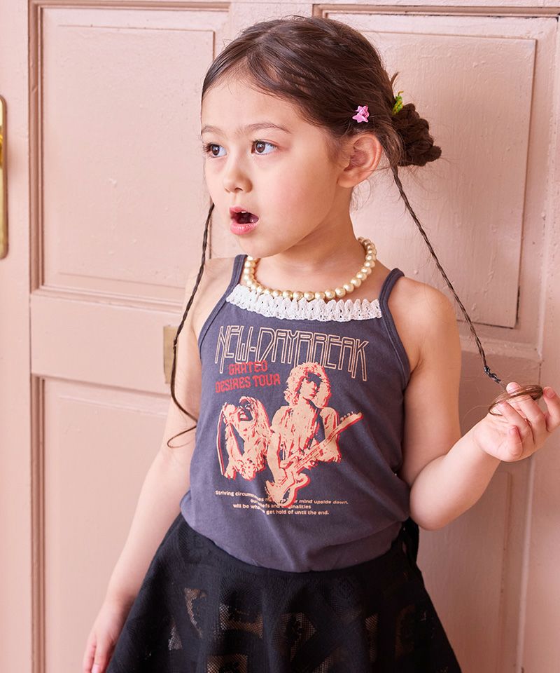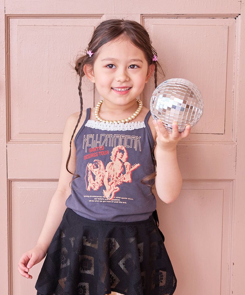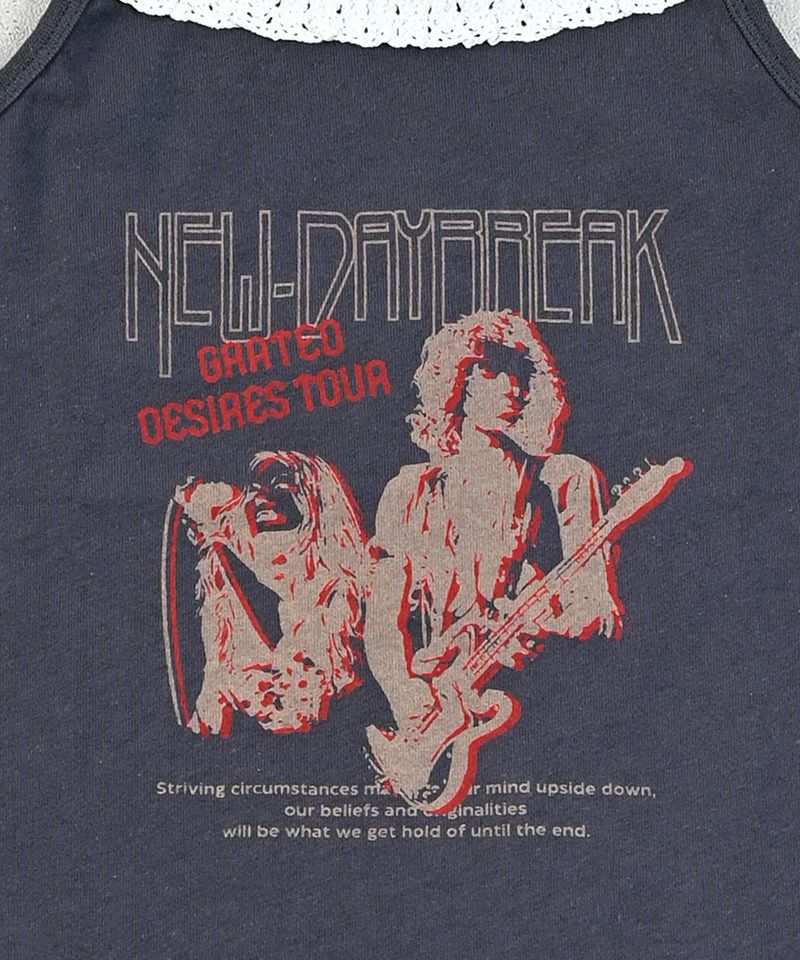 ロックテイストのプリントにガーリーなレースが印象的な1枚。