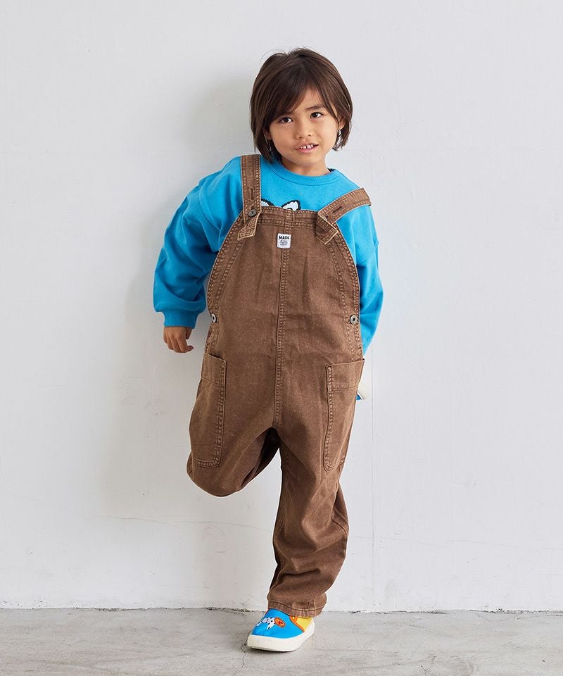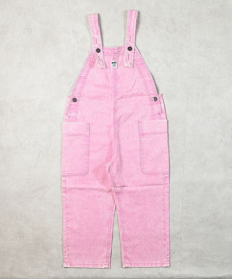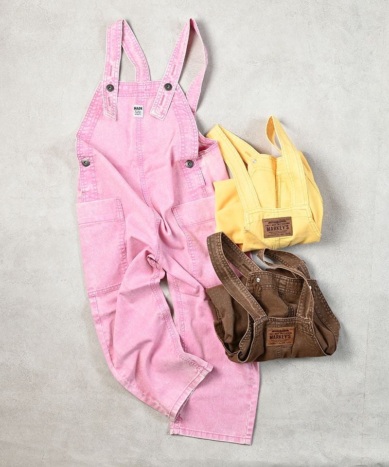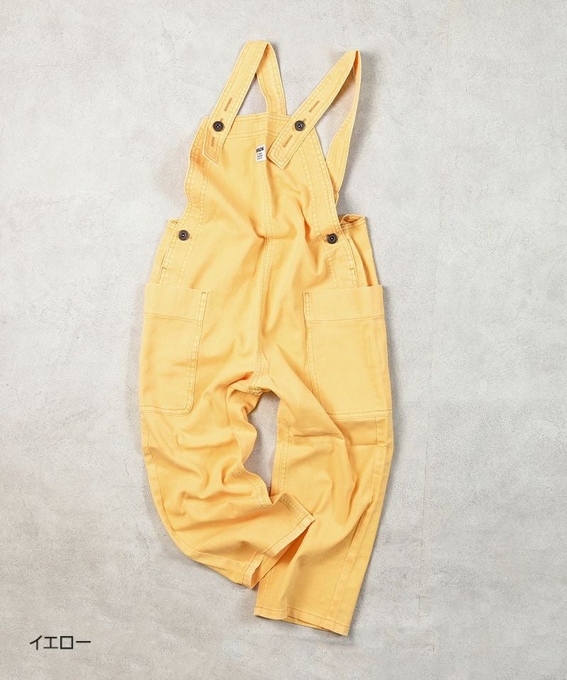 製品染めによる独特の色合いと、使い込んだようなヴィンテージライクな風合いが魅力のオーバーオール。