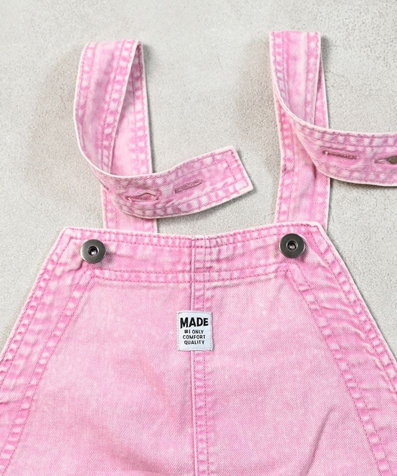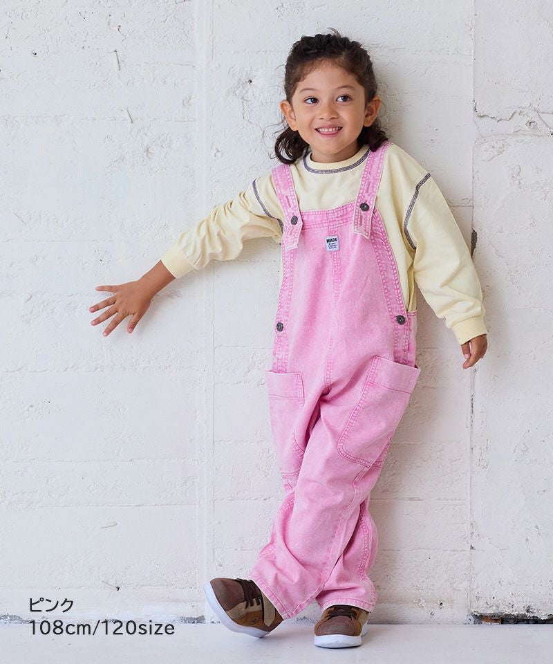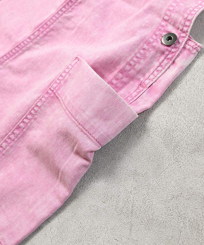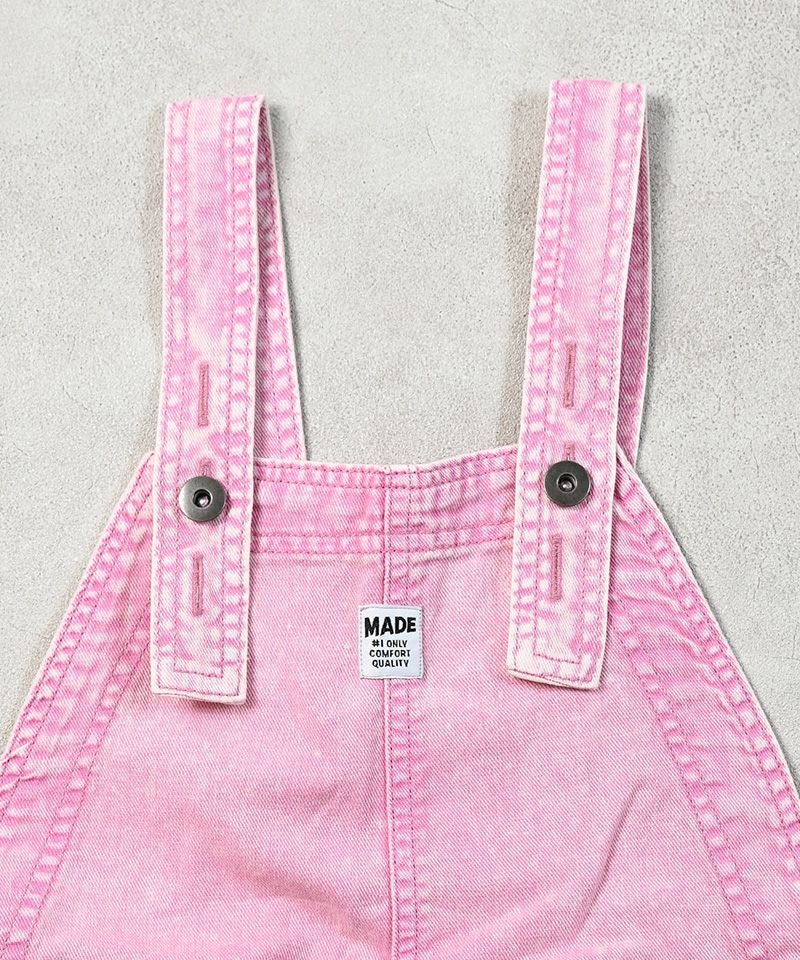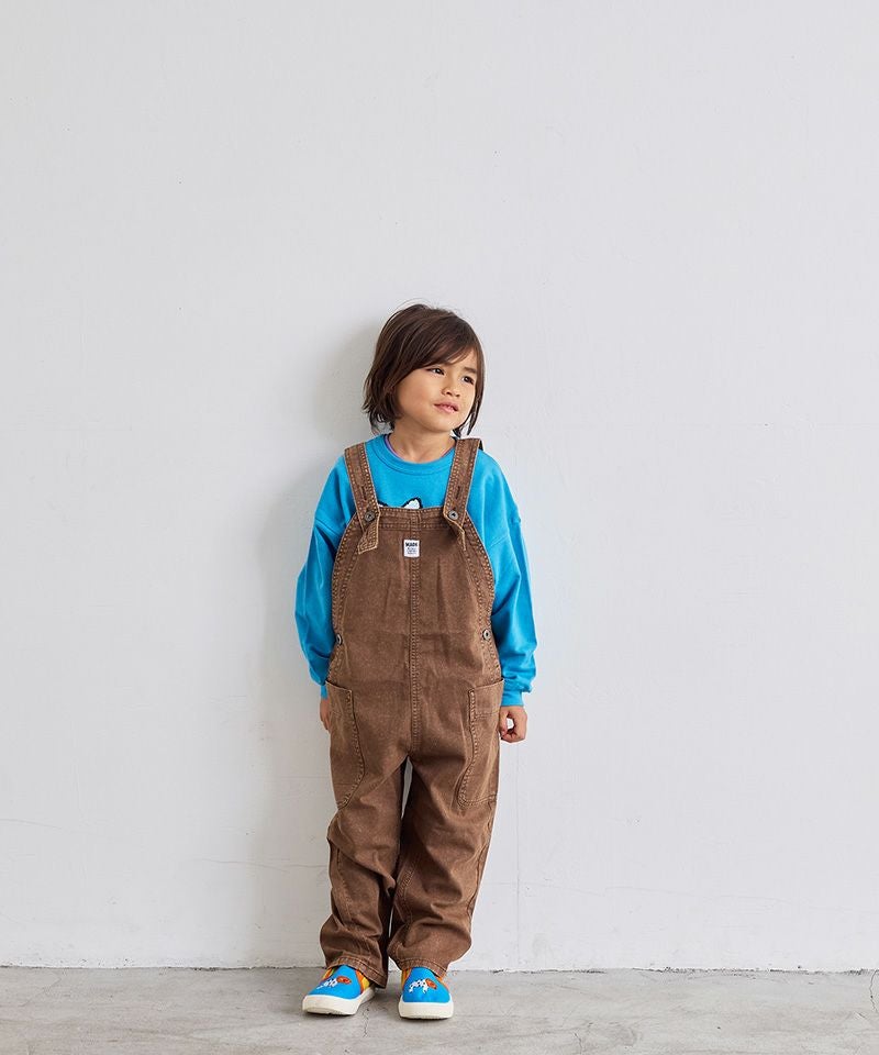 製品染めによる独特の色合いと、使い込んだようなヴィンテージライクな風合いが魅力のオーバーオール。