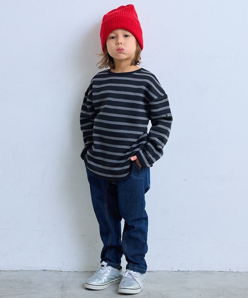 ロンT1枚でシンプルなトップスとのラフなコーデもカワイイ。