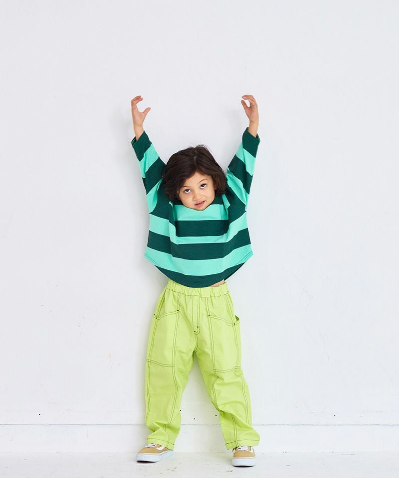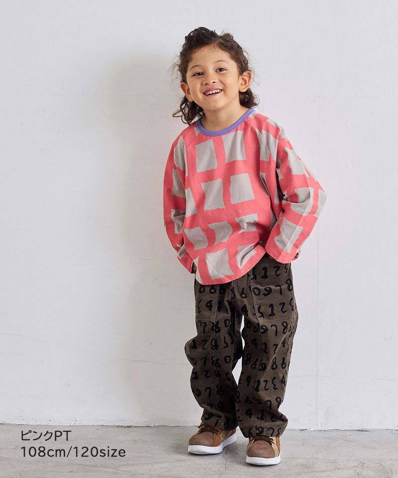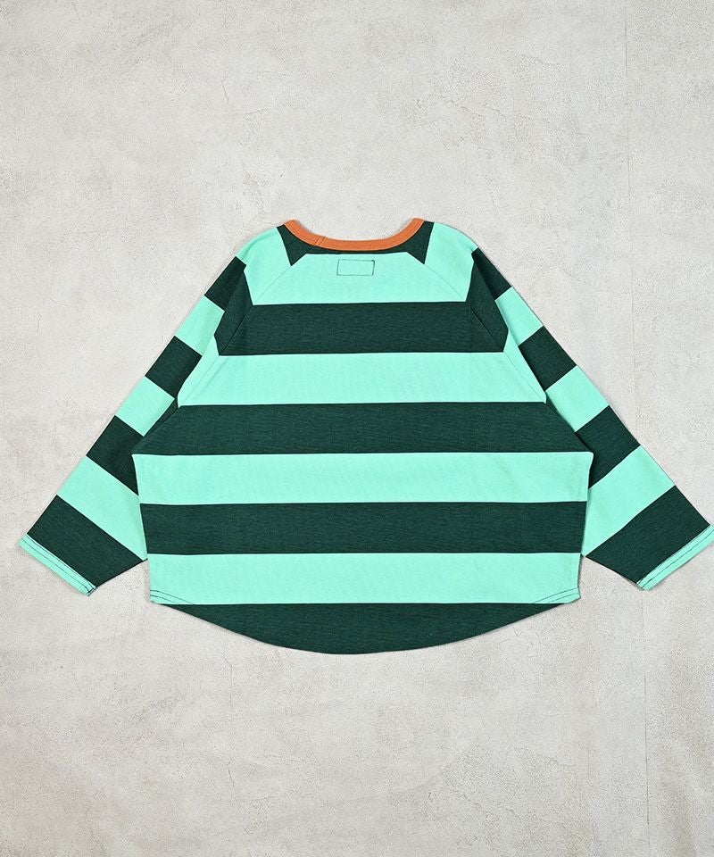 ラグランスリーブなので、ゆったりシルエットコーデがオススメ。