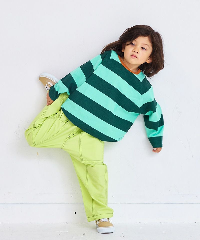 ボーイズライクな太ボーダーとチェックがコーデの主役になります。