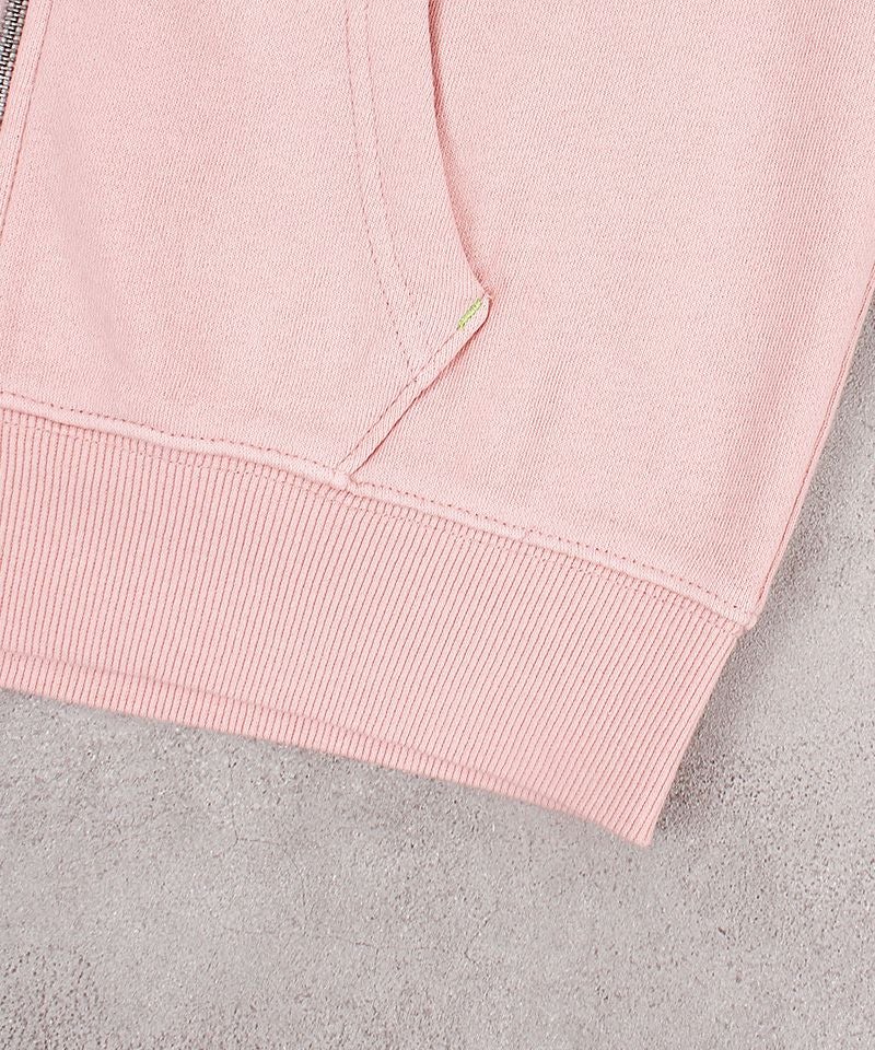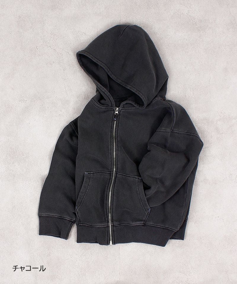 ピグメント加工ならではの色褪せ感が魅力のジップパーカー。