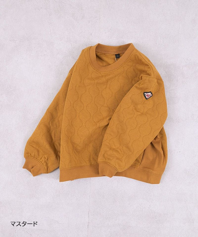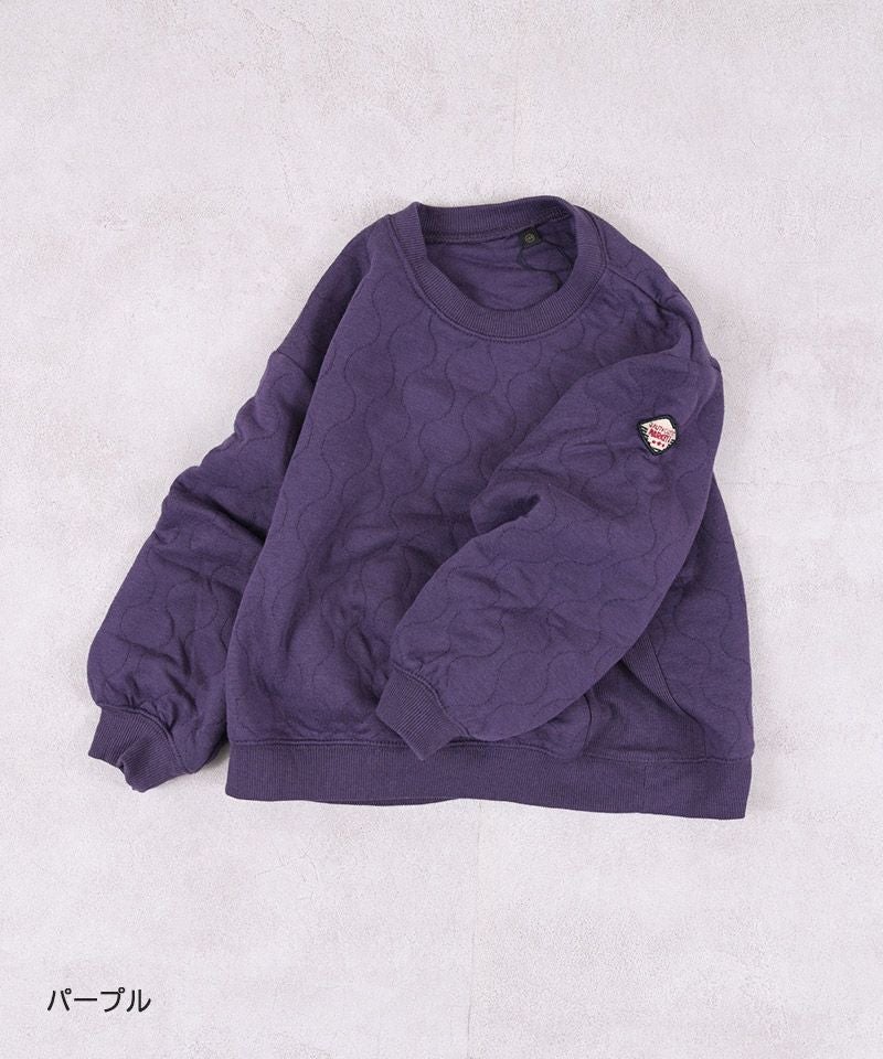 ふっくらと中わたを挟んだキルト素材のトレーナー生地。
