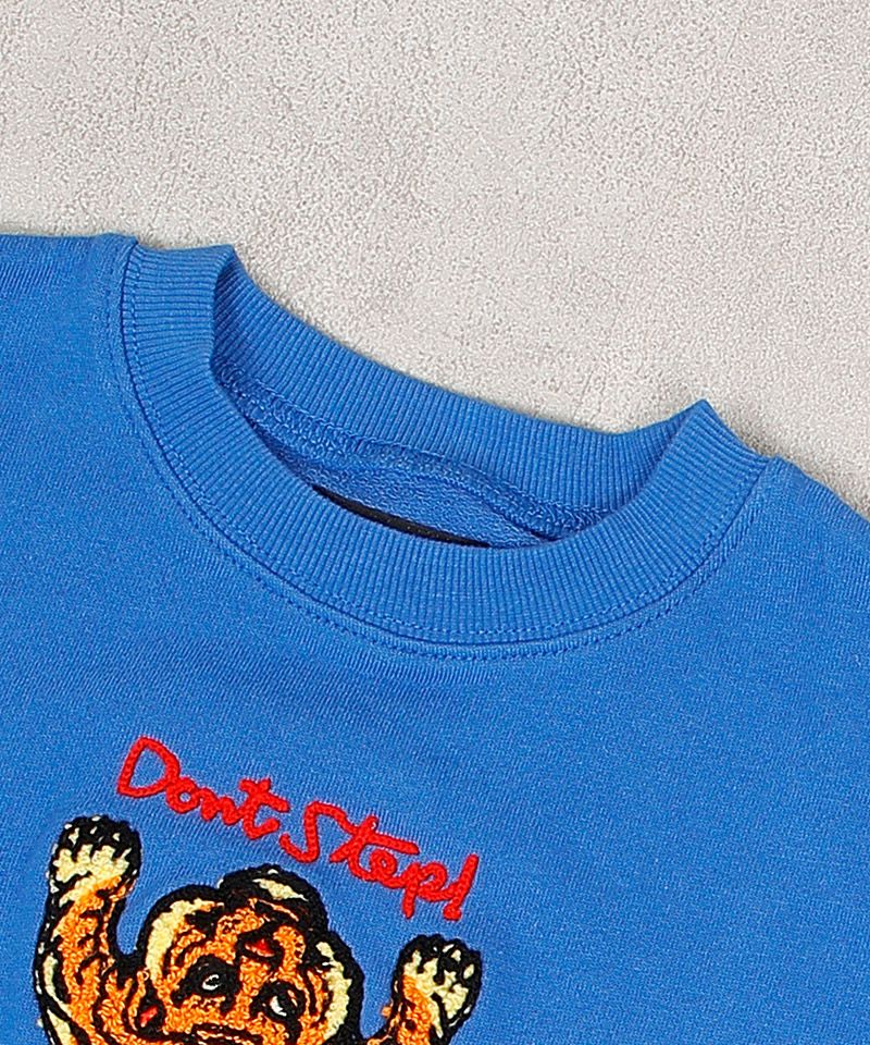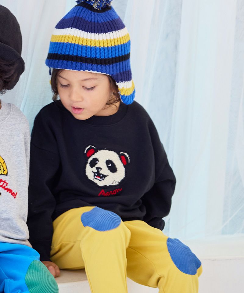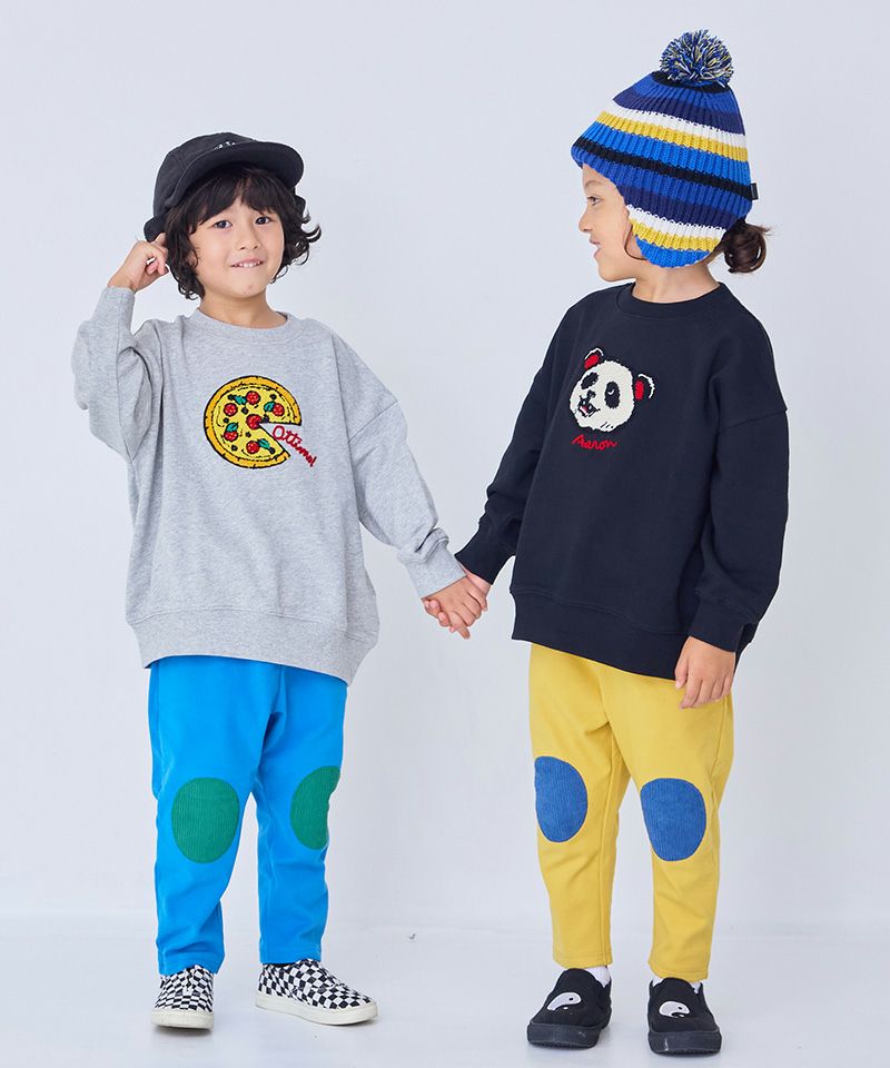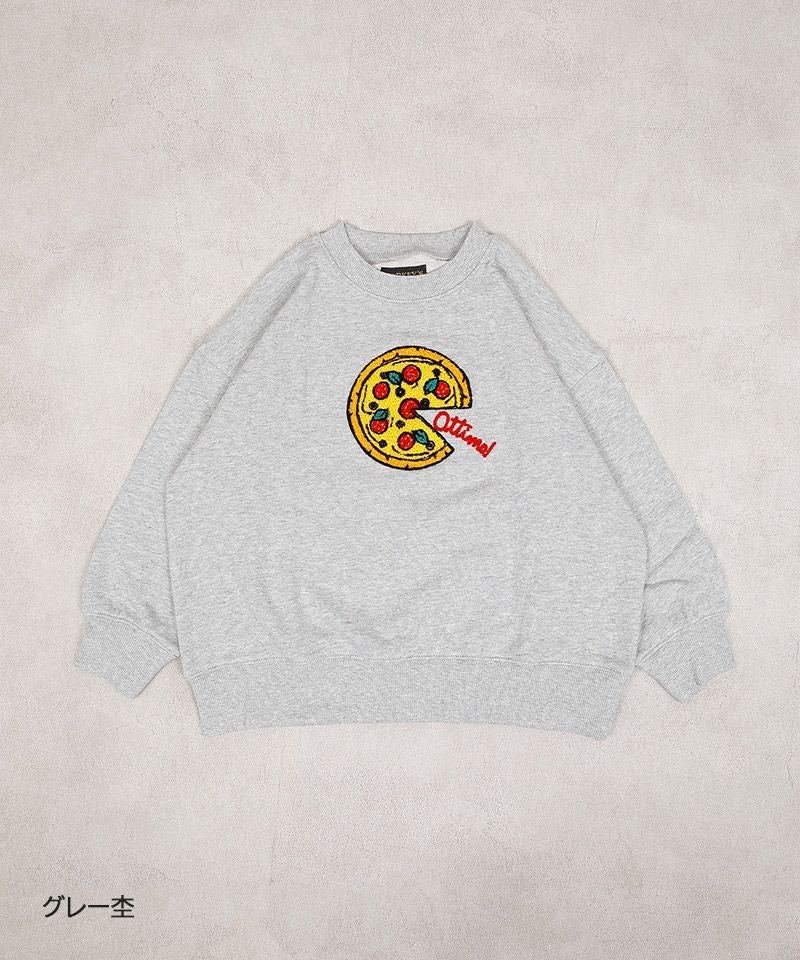もこもこと立体感のあるサガラ刺繍でモチーフを大胆に表現した、主役級デザインの裏毛トレーナー。