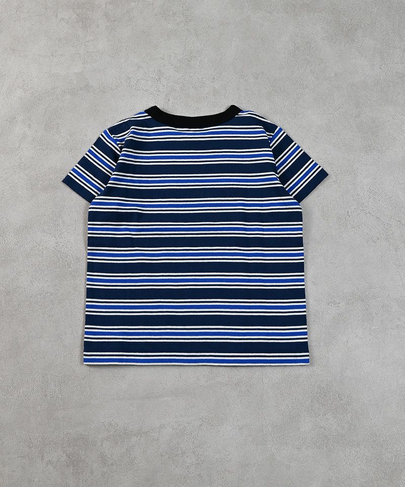 配色のマルチボーダーと、ブランドロゴの刺繍が印象的。