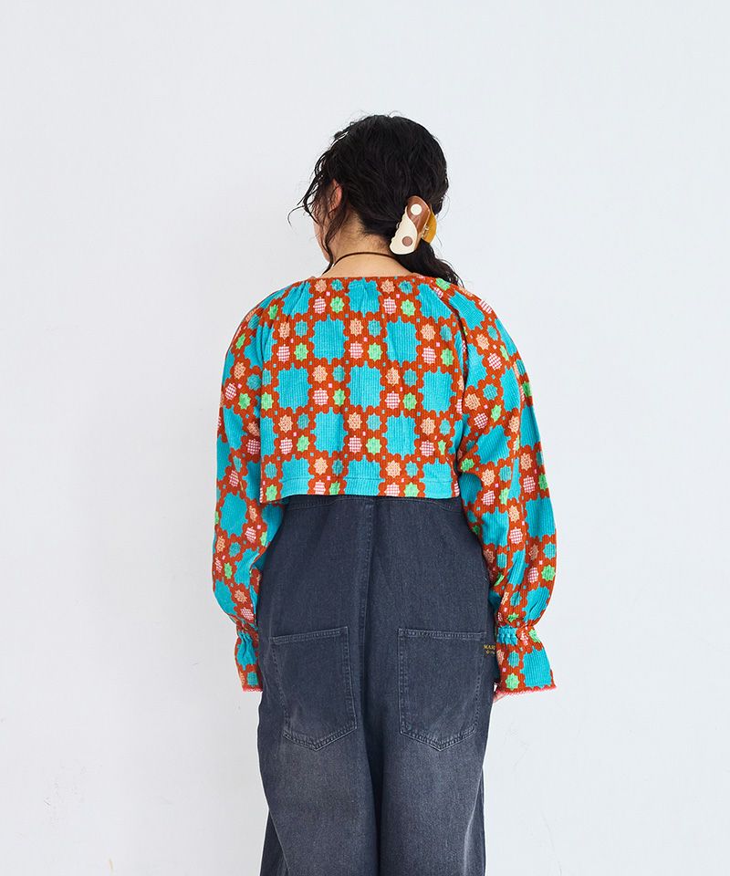 ショート丈なのでハイウエストのボトムと合わせると脚長&スタイルアップ効果が期待できます◎