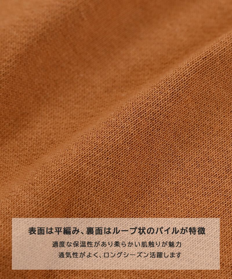ほどよい厚みのスウェット生地で、ロングシーズン着やすい素材感。