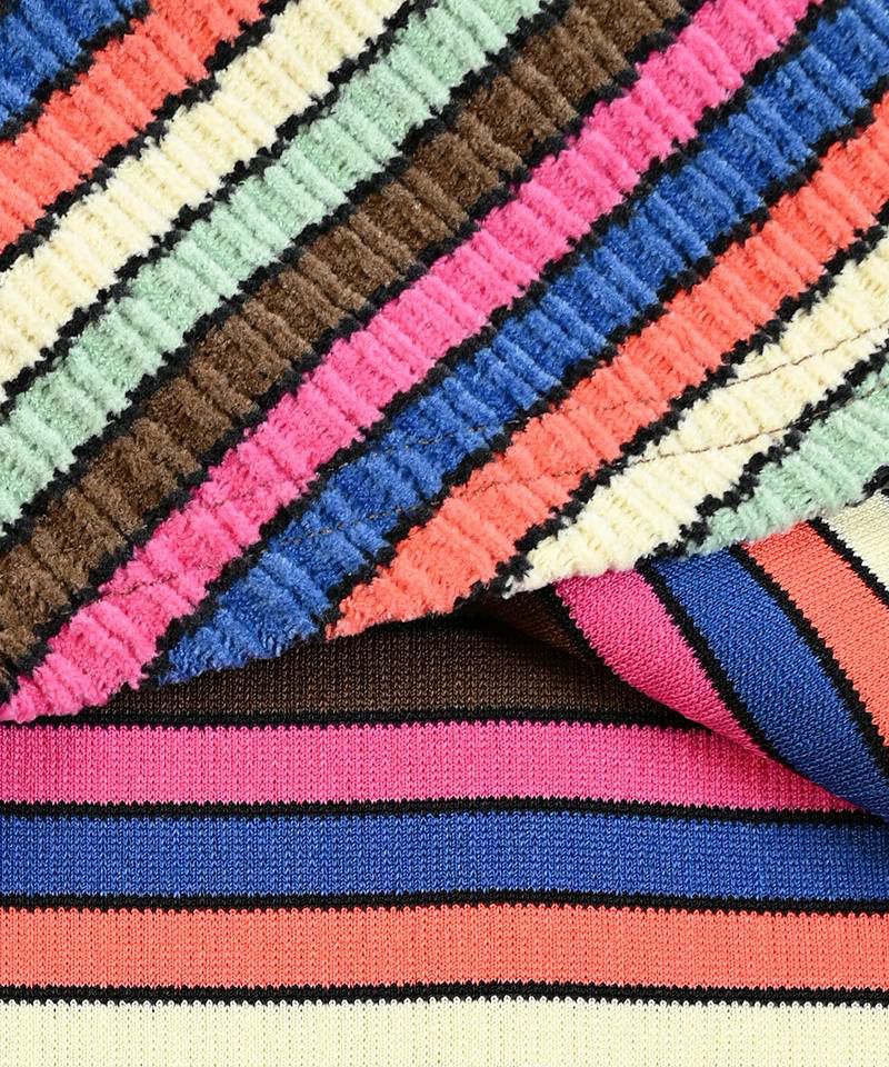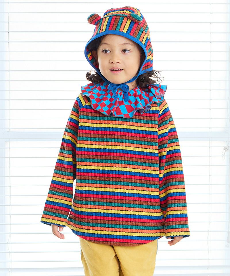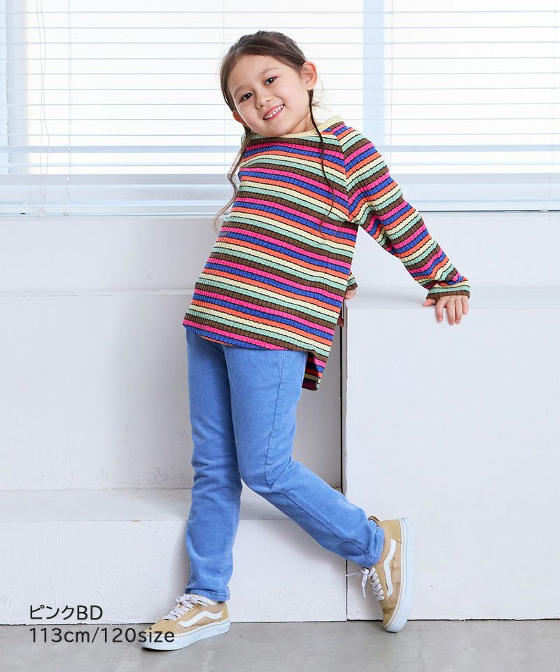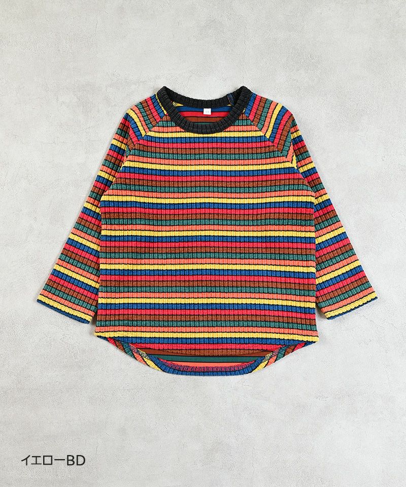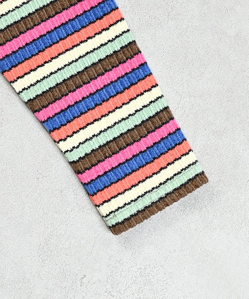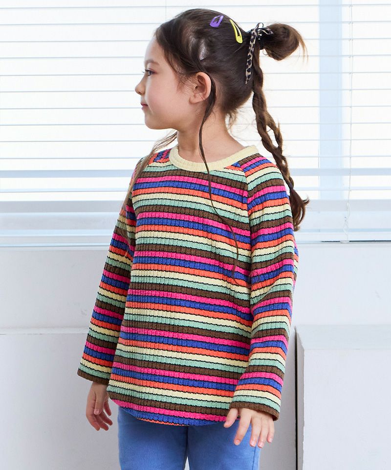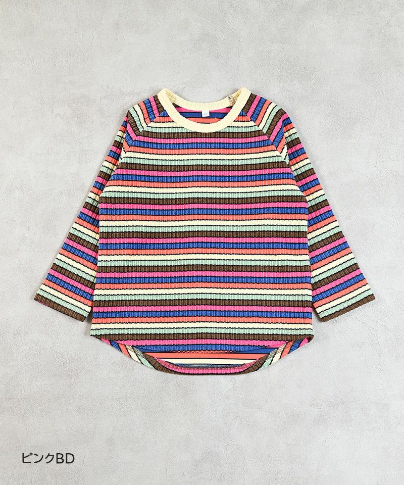 元気いっぱいのマルチボーダー柄が目を引くカットソー。