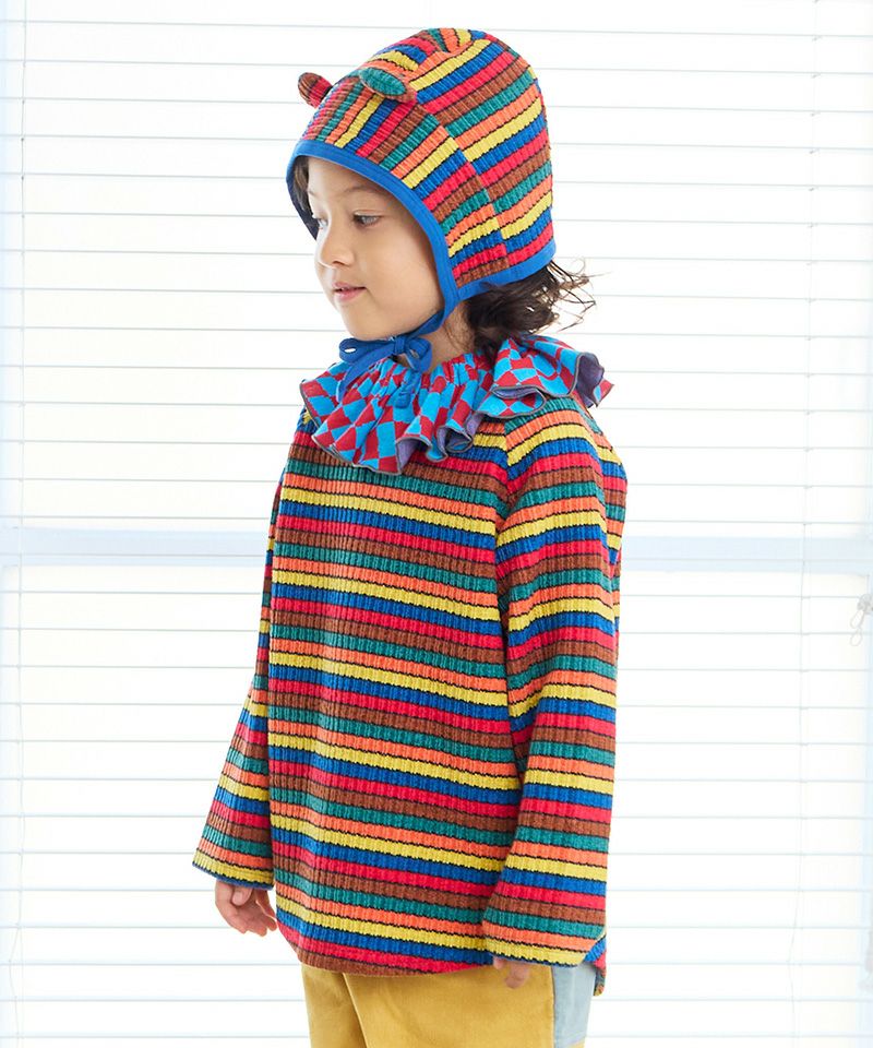 首まわりの配色リブもアクセントになり、カジュアルな中に遊び心をプラスしています。