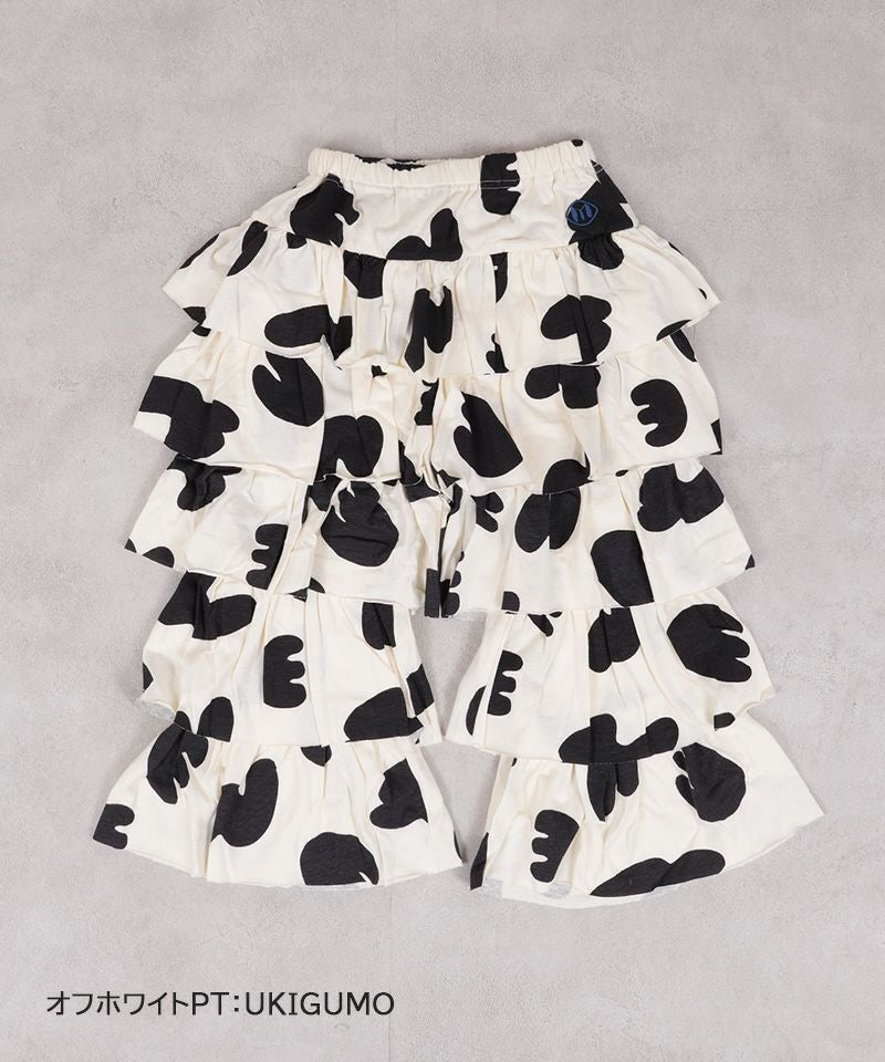 ボリュームたっぷりのフリルを段々に重ねた、華やかさ満点のガーリーパンツ。
