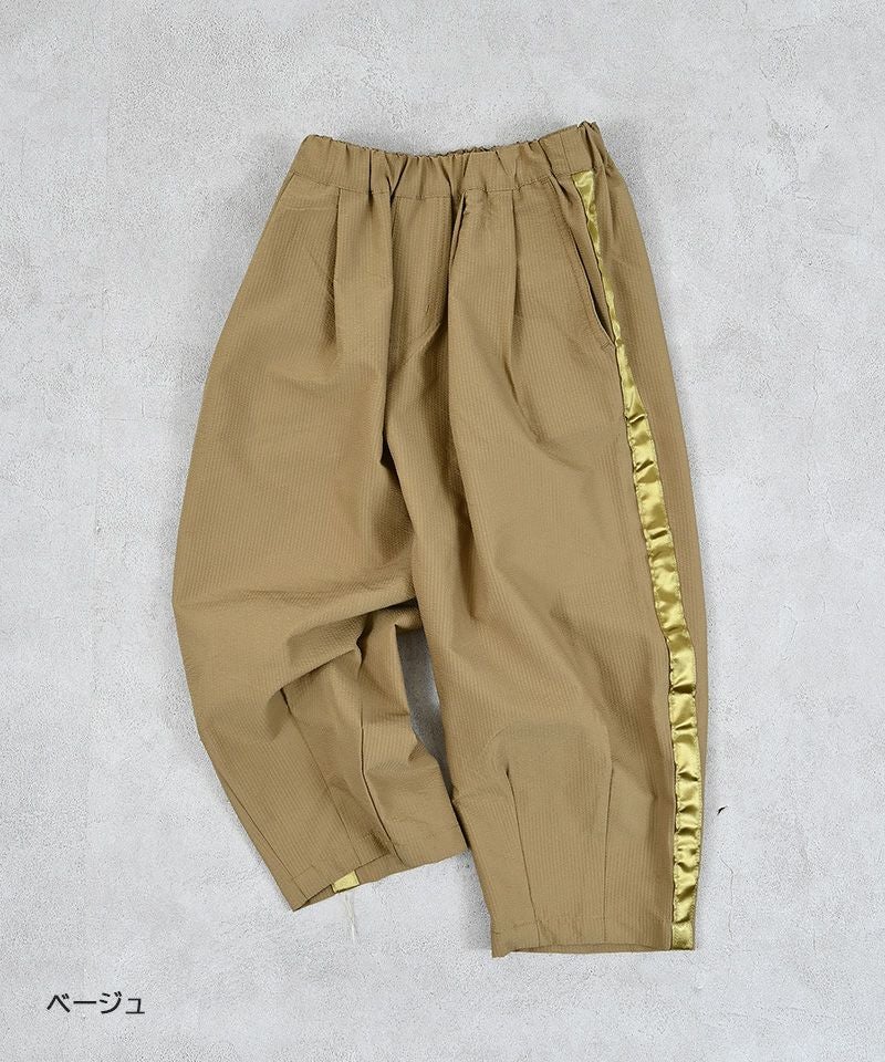 サイドに施した上品なラインテープがポイントのロングパンツ。