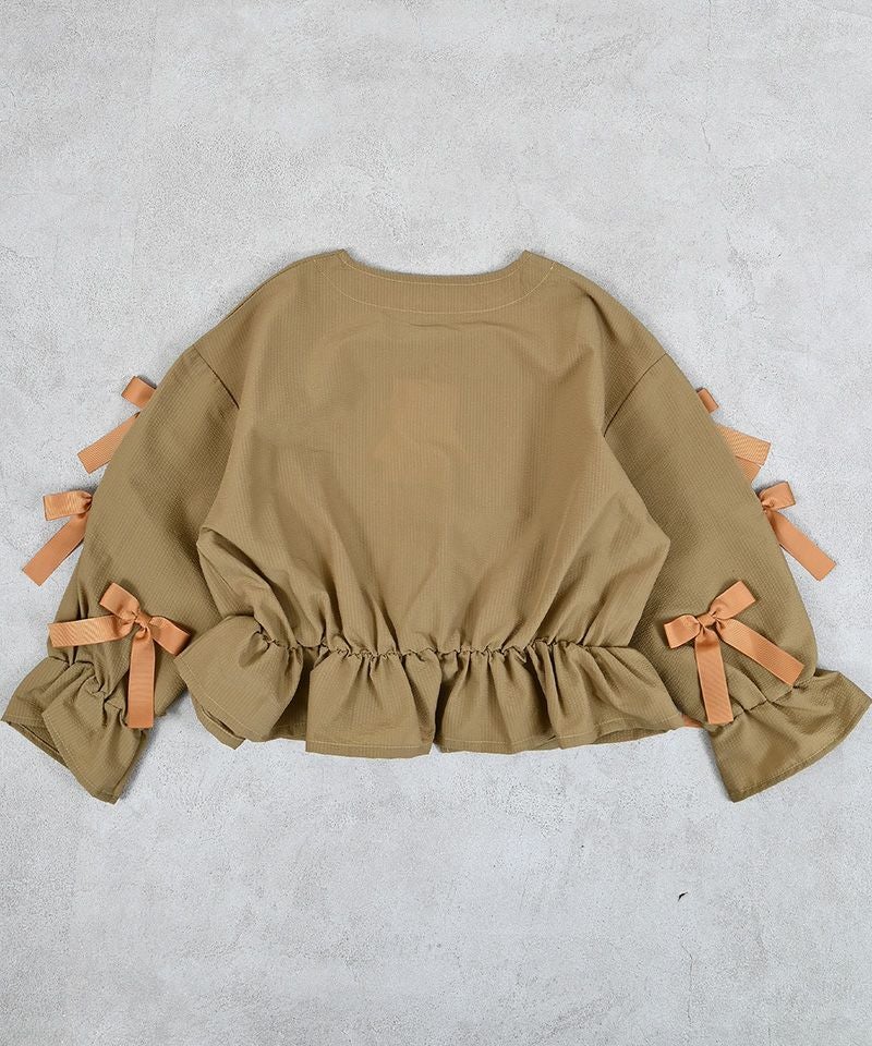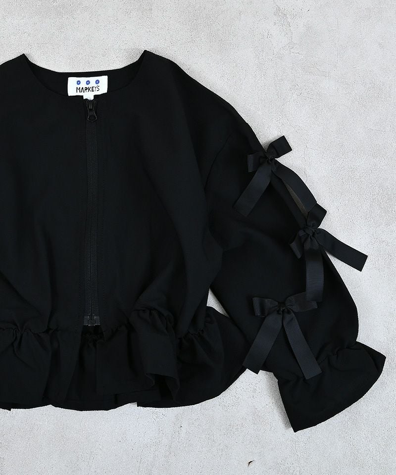 お袖にたっぷり並んだリボンが目を引くガーリーなブルゾンです。