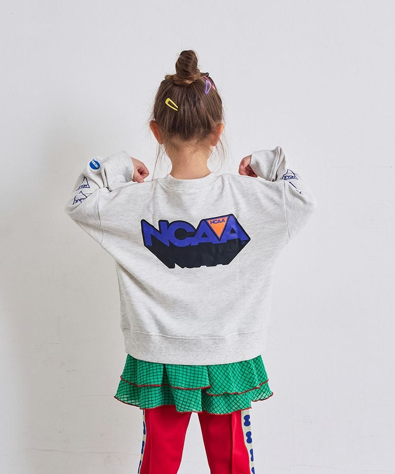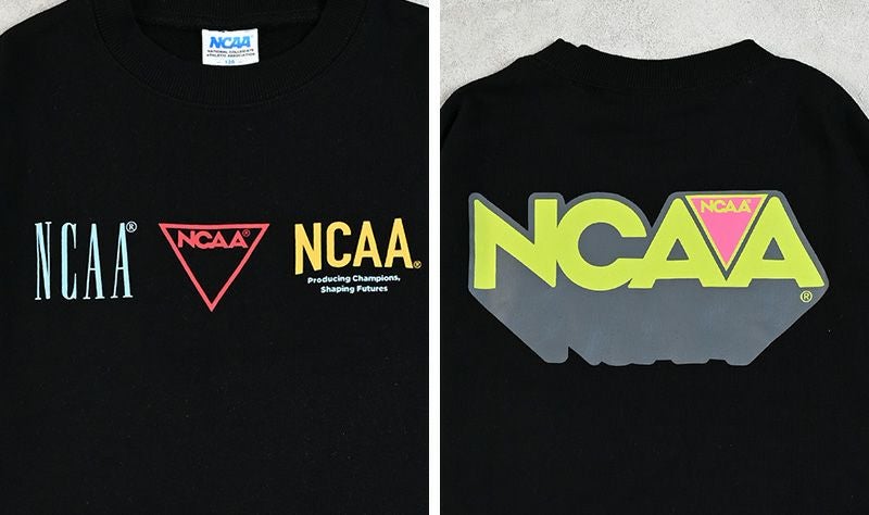 色んな“NCAA”のブランドロゴがデザインがされているスウェット。