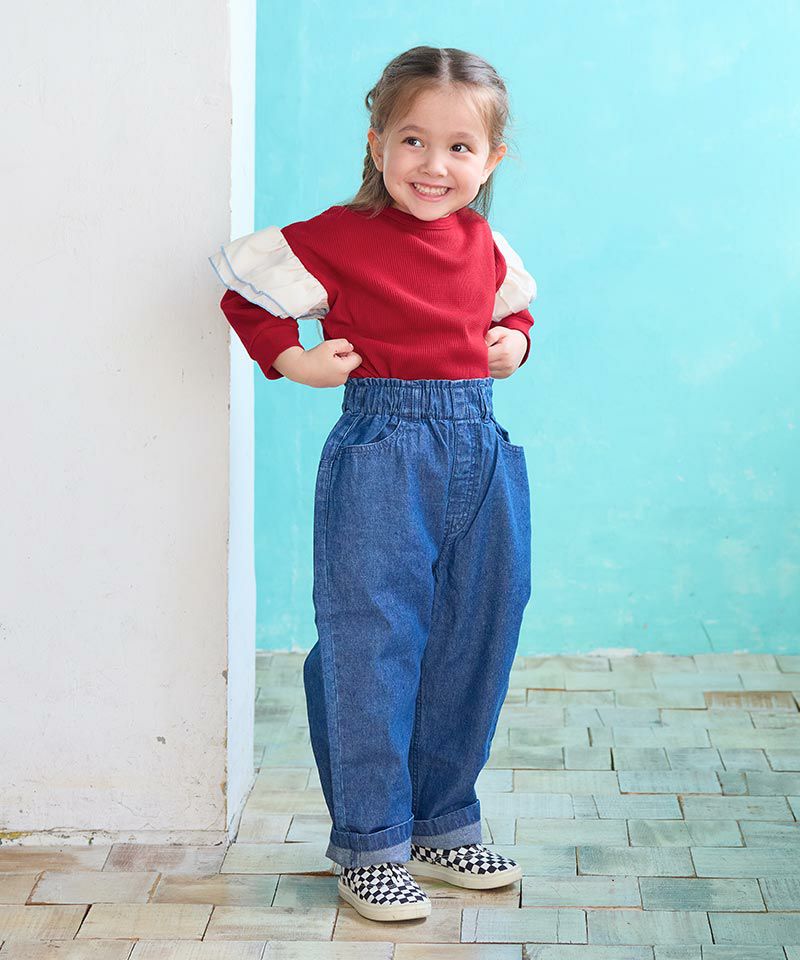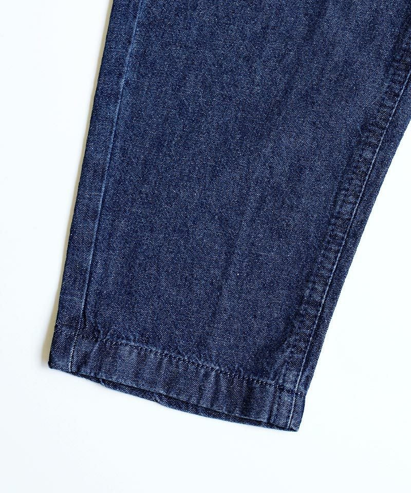 綿100%の柔らかなデニムの生地感で、ゆったりとした履き心地。